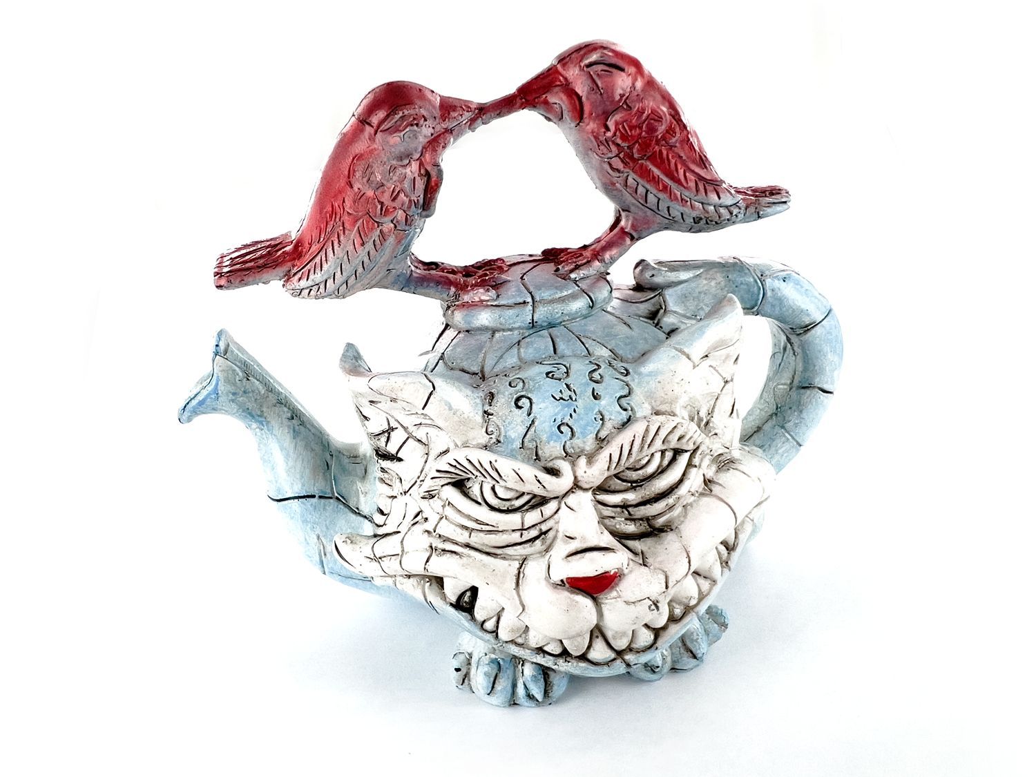 Статуэтка в виде чайника имеет форму симпатичного кота с детализированными чертами и хвостом, который служит в качестве ручки. Он выполнен из керамики высокого качества, что обеспечивает прочность и долговечность изделия.