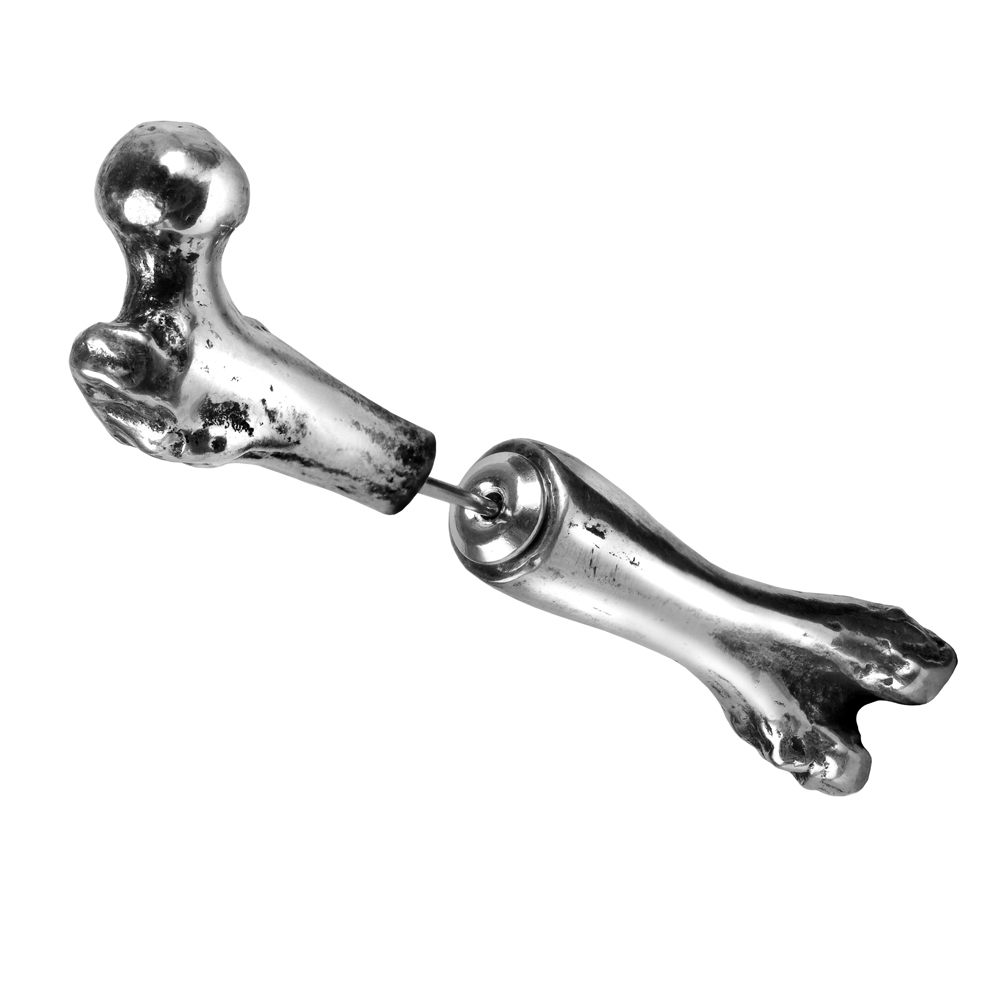 Серьга из английского пьютера, в виде бедренной кости . Идеи и дизайн изделия разработаны художниками бренда The Alchemy Gothic и защищены авторским правом. Изделия в индивидуальной фирменной упаковке, включающей гарантию и инструкцию по уходу. Разработаны и изготовлены вручную в Англии из английского пьютера.