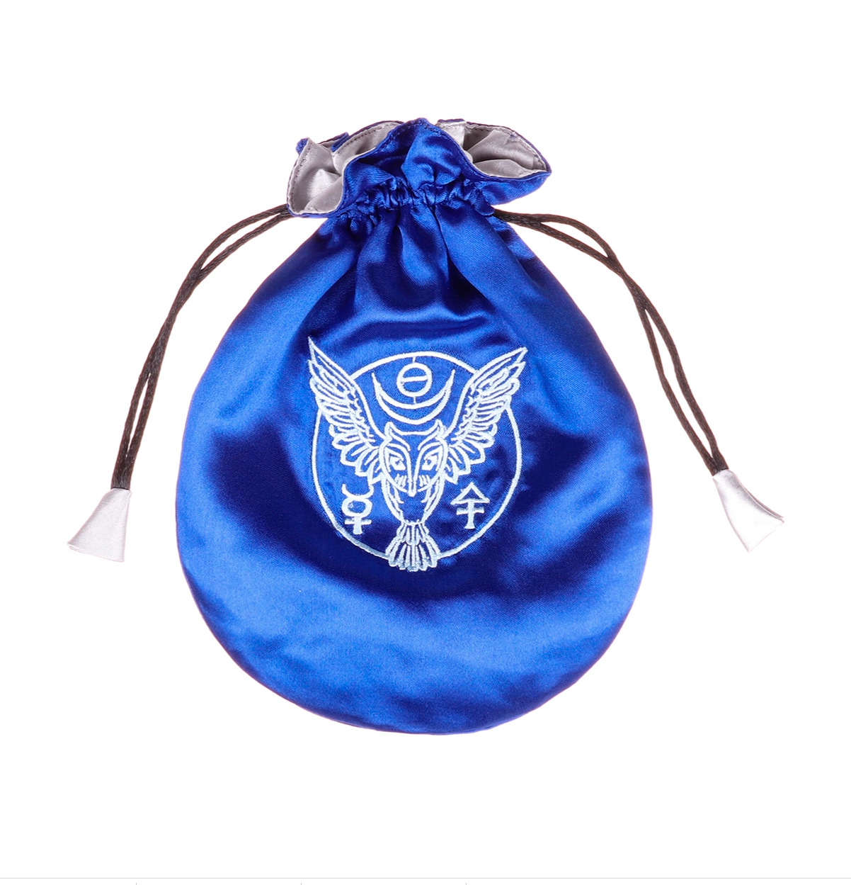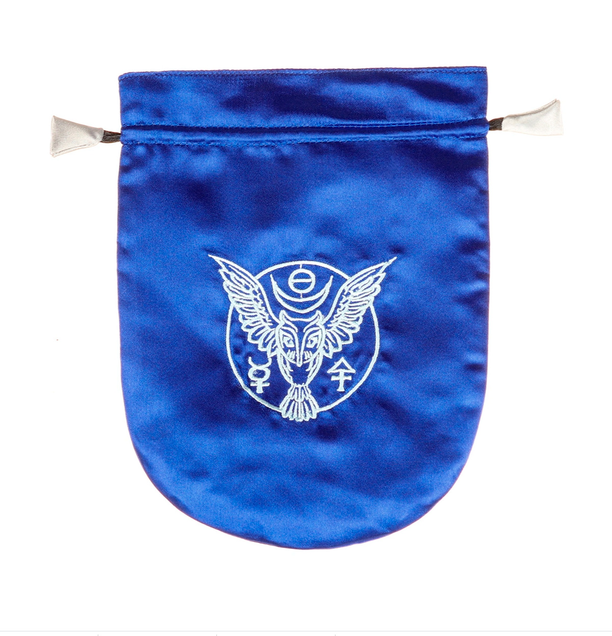 Мешочек для карт, изготовленый из качественной атласной ткани и имеющий внутреннюю подкладку, изготовлен в Англии дизайнерами бренда Eastgate. Наши прекрасно выполненные атласные мешочки для Таро украшены вышивкой с магическими символами и подкладкой дополнительных цветов. Каждый мешочек закрывается на шнурок, а подкладка отделана вручную. Эти оригинальные мешочки достойны даже самого взыскательного владельца Таро.