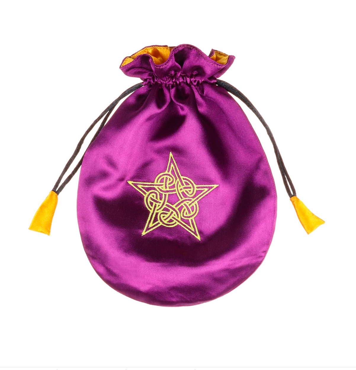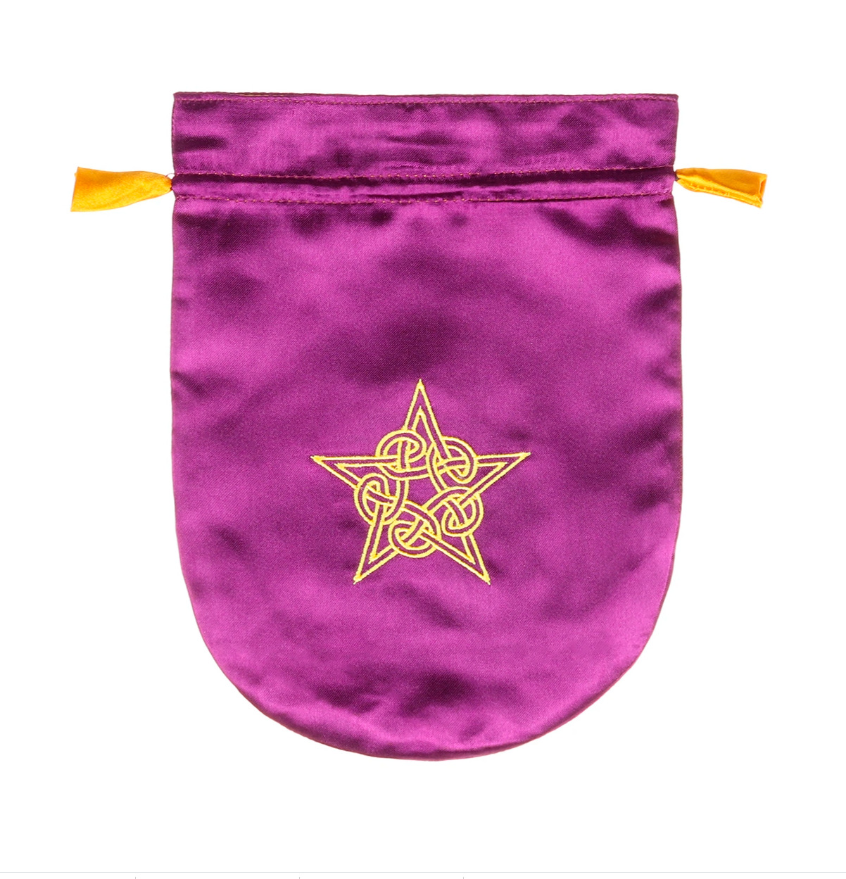 Мешочек для карт, изготовленый из качественной атласной ткани и имеющий внутреннюю подкладку, изготовлен в Англии дизайнерами бренда Eastgate. Наши прекрасно выполненные атласные мешочки для Таро украшены вышивкой с магическими символами и подкладкой дополнительных цветов. Каждый мешочек закрывается на шнурок, а подкладка отделана вручную. Эти оригинальные мешочки достойны даже самого взыскательного владельца Таро.