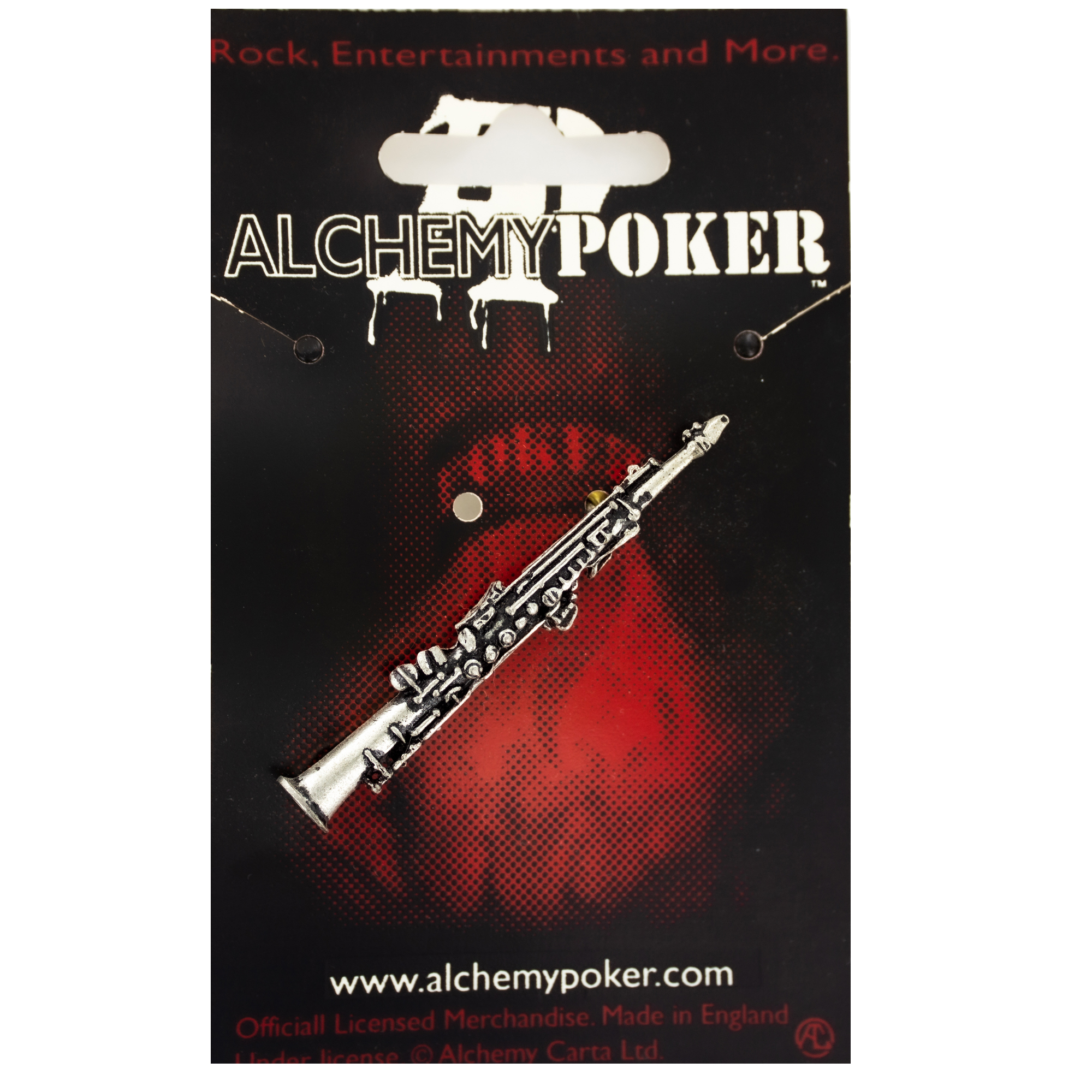 Брошь в виде кларнета от Alchemy Gothic изготовлена в Англии из пьютера и имеет серебряное покрытие. Высокодетализированый значок не оставит равнодушным любителя музыки как классической так и других жанров, он гармонично впишется в любой стиль одежды. Имеет две булавки крепления подходящие больше к плотной ткани сумки\рюкзака или воротничка.