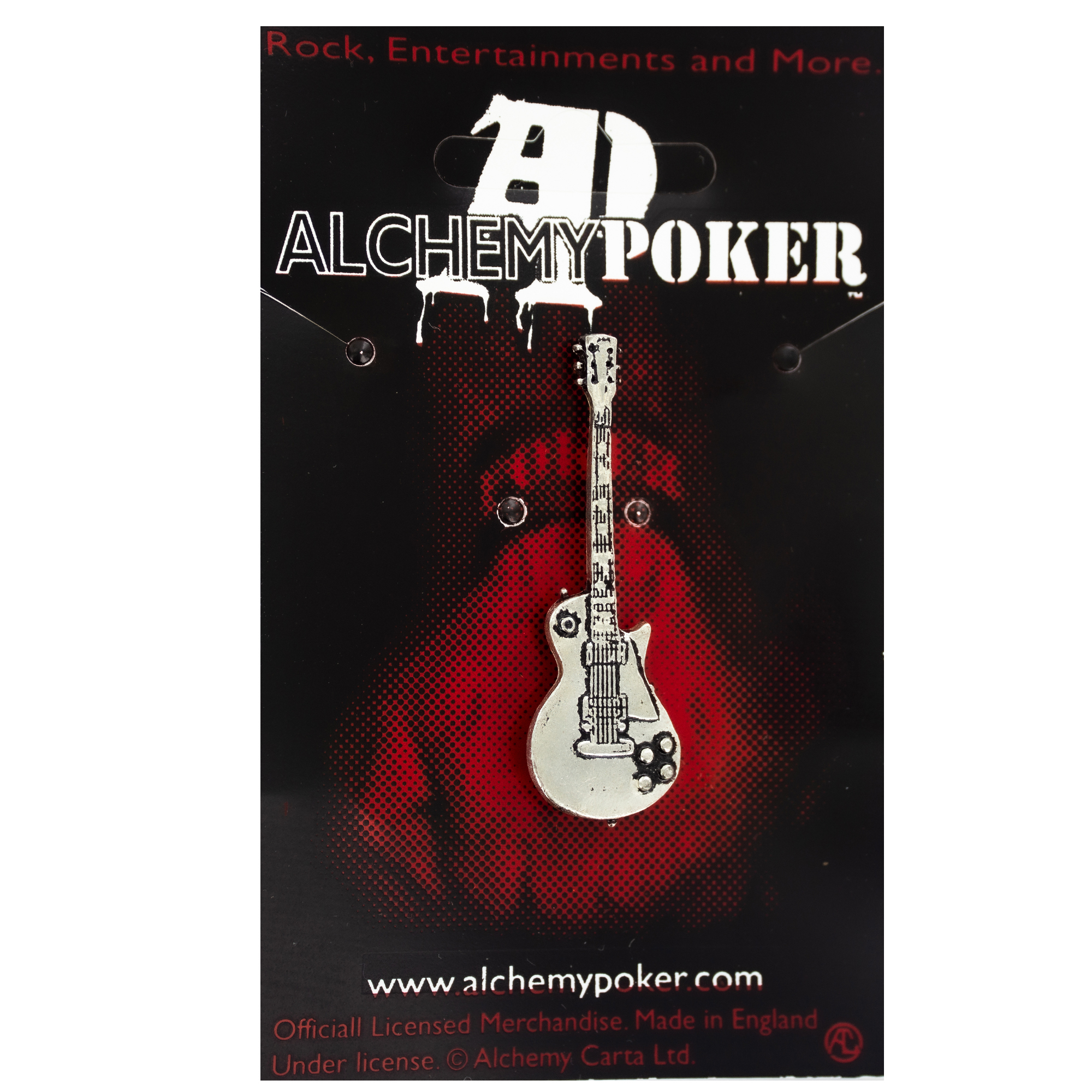 Брошь в виде Гитары от Alchemy Rocks изготовлена в Англии из пьютера и имеет серебряное покрытие
