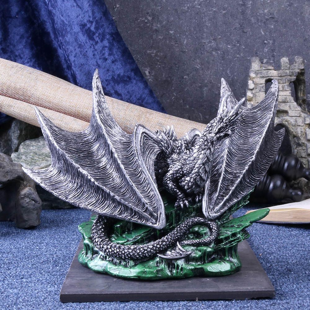 Эта очаровательная серебряная фигурка Дракона, созданная в фантастическом воображении всемирно известного скульптора и художника фэнтези Эндрю Билла, была увековечена в смоле альтернативными мастерами Nemesis Now.