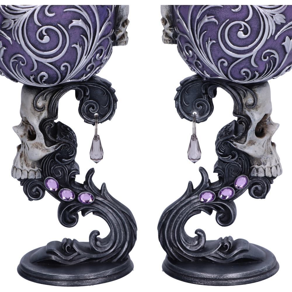 Когда смотрю в твои глаза, вижу обещание любви. Украшенные замысловатыми серебряными деталями в стиле барокко, бокалы прекрасно дополнят фантастическую коллекцию. На ножке мы видим жуткий череп, выступающий наружу.