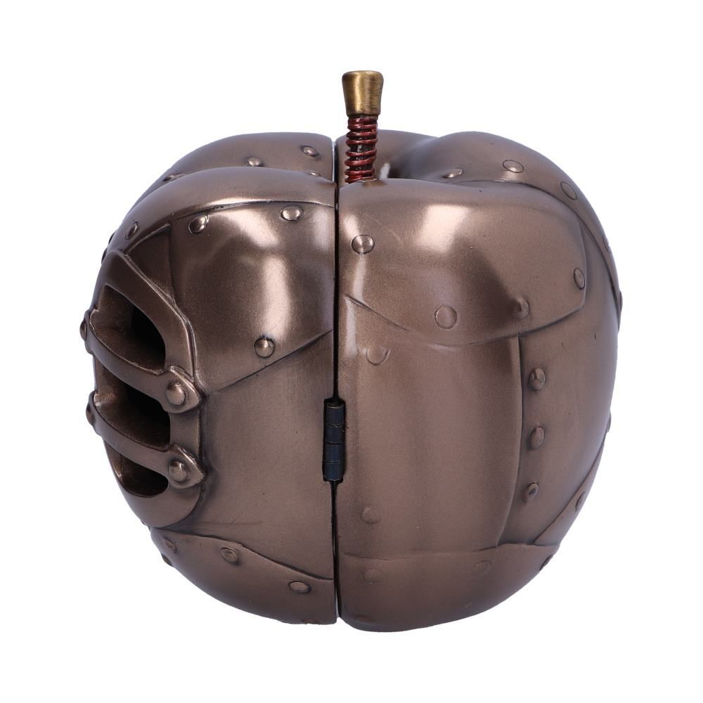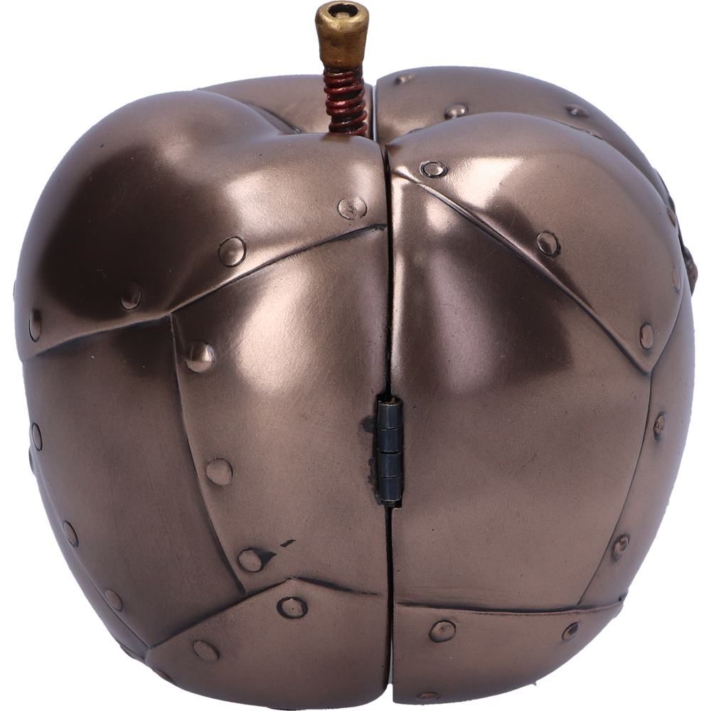 Эти часы в стиле стимпанк станут фантастическим дополнением к любой каминной полке. Внешний корпус часов имеет вид большого золотого яблока, состоящего из нескольких частей, сваренных и склепанных вместе. Открыв золотую кожуру яблока, можно увидеть сердцевину, в которой находятся карманные часы, окруженные сотнями красных и золотых механических шестеренок, которые приводят их в движение. Идеальные для любого поклонника Г.Г. Уэллса, эти часы отлиты из высококачественной смолы, а затем покрыты золотой ручной росписью, и поставляются из альтернативной коллекции Nemesis Now.