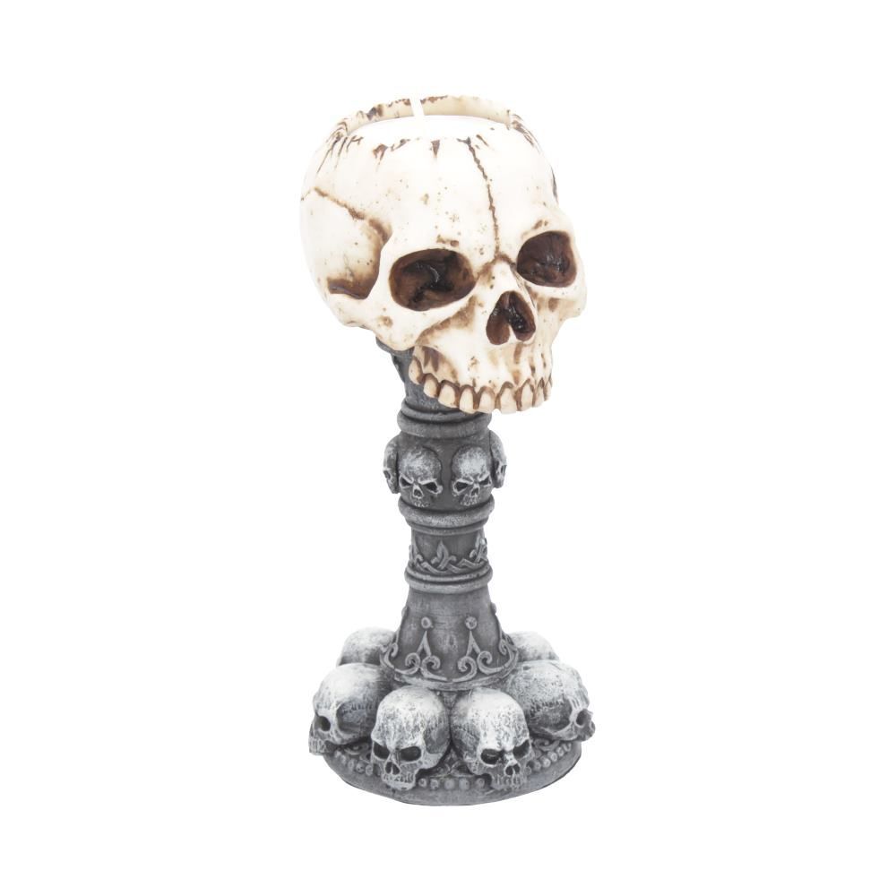 Этот подсвечник-факел выполнен в виде черепа покоящегося на постаменте-ножке украшенной другими меньшими черепами. Вмещает в себя одну чайную свечу. Подсвечник из макабрической коллекции бренда Nemesis Now. Зажги свечу в честь Богов Смерти в этом прекрасном готическом подсвечнике. Изделие доступно исключительно в альтернативной коллекции подарков Nemesis Now. Древний череп находится на вершине украшенной узорами ножки. В черепе отсутствует верхняя часть, и достаточно места для чайной свечи. Ножка подсвечника украшена замысловатыми барочными узорами, а также небольшими черепами, придающими жутковатый вид. Отлитый из тончайшей смолы и расписанный вручную подсвечник прекрасно дополнит интерьер готического дома.