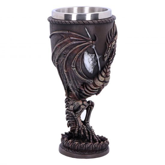Этот изысканный кубок "Дракон" от бренда альтернативной сувенирной продукции Nemesis Now идеально подходит для любого поклонника этих мифических зверей! Окаменелые останки крупного дракона образуют ножку и чашу этого кубка, образуя великолепный центральный элемент. Отлитый из тончайшего полистоуна и украшенный искусной ручной росписью, этот кубок оснащен съемной вставкой из нержавеющей стали для удобства очистки и может придать оттенок макабричности любому напитку. Предназначен для использования по прямому назначению, а так же в декоративных целях. Мыть только вручную. Объем бокала - 200 мл. 17 см.