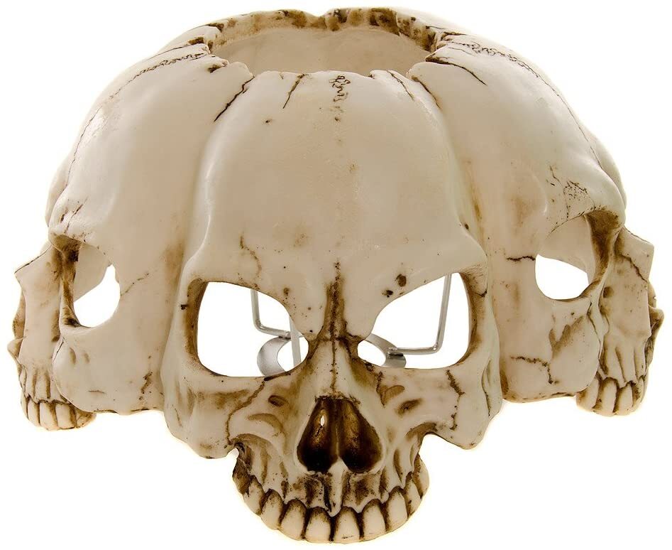 Осветите свою комнату этой мрачной альтернативной лампой. Изгибающаяся вверх от черного основания ножка этой лампы представляет собой позвоночник, изгибающиеся вверх к месту расположения лампочки. Абажур состоит из нескольких лиц скелета, соединенных по бокам, нижние челюсти отсутствуют. Отлитая из высококачественной смолы и тщательная ручная роспись.