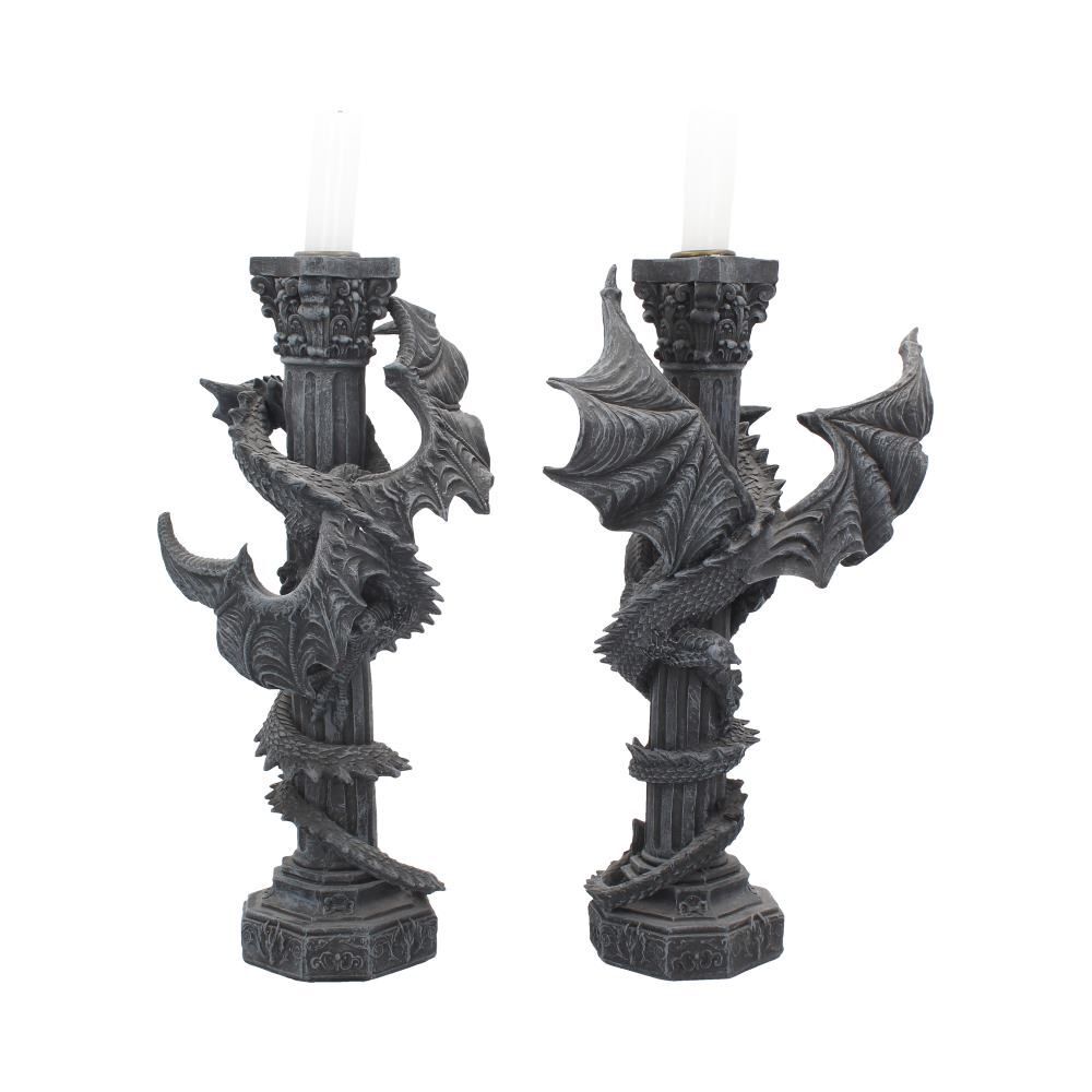 Этот прекрасный набор подсвечников от альтернативного бренда Nemeiss Now станет прекрасным дополнением любой альтернативной гостиной или столовой. Прижавшись к двум колоннам в стиле барокко, пара драконов благополучно расположилась рядом. Каждый из них крутит свое тело вокруг колонны, а их крылья широко раскинуты за спиной. Отлитый из тончайшей смолы и тщательно расписанный вручную, этот держатель идеально подходит для любого любителя мистических зверей, который ищет немного света. 28 см.
