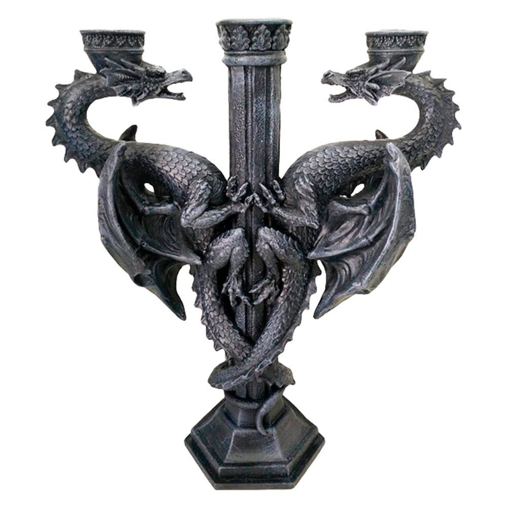 Сформированный из двух черных драконов, этот тройной канделябр станет идеальным дополнением к готической столовой.