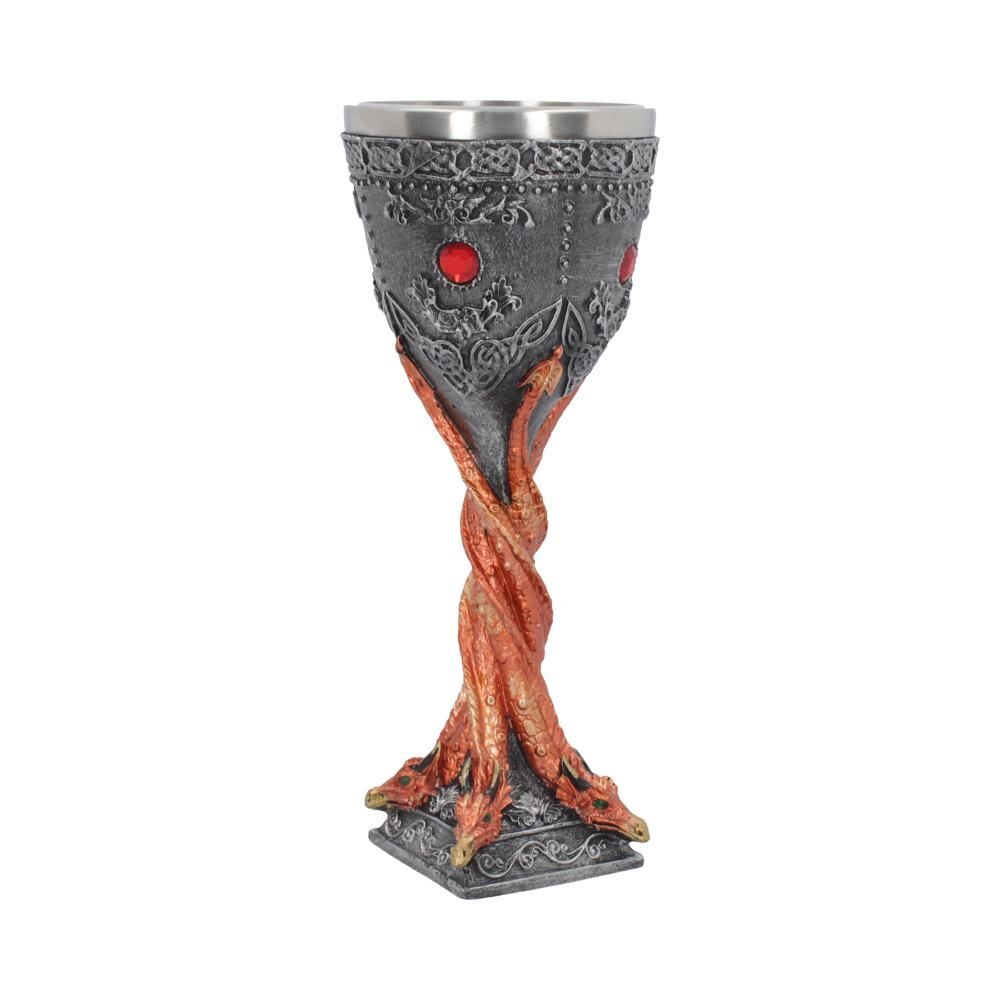 Готический кубок, доступный в альтернативной коллекции подарков Nemesis Now, порадует всех поклонников фэнтези. Самая примечательная часть кубка - его ножка, составленная четырех янтарных драконов, переплетенных друг с другом.
