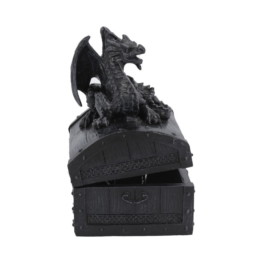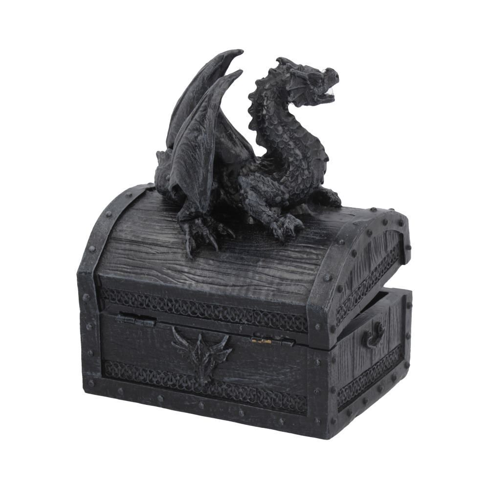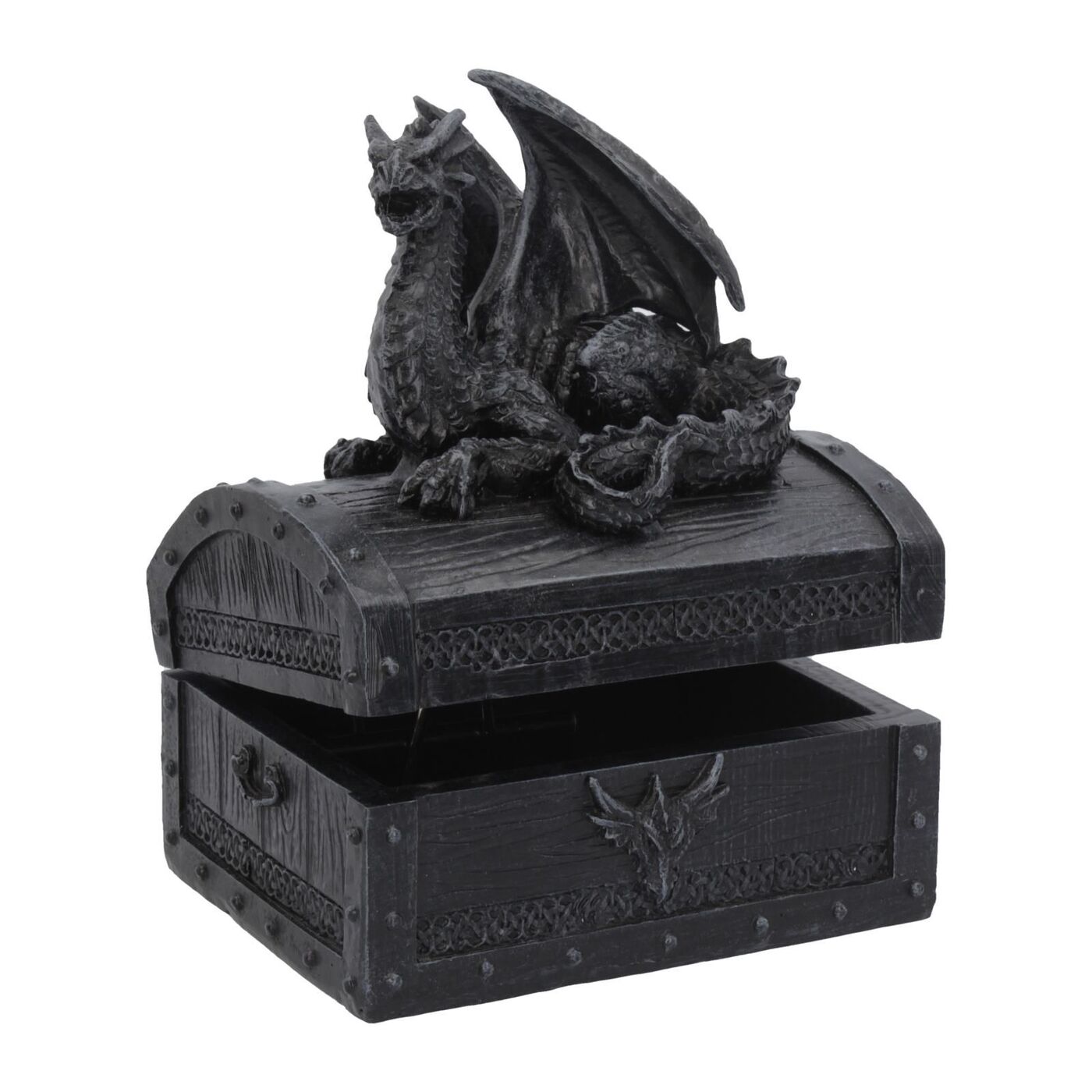 Nemesis Now с гордостью представляет драконью шкатулку, доступную в коллекции высококачественных подарочных изделий. Сидящий на крышке черного сундука с сокровищами маленький Дракон защищает ваш клад.