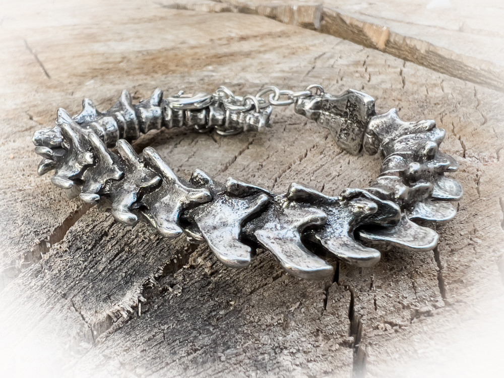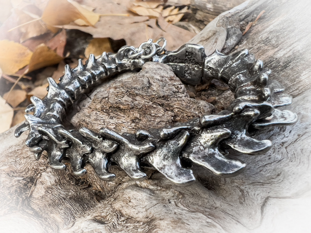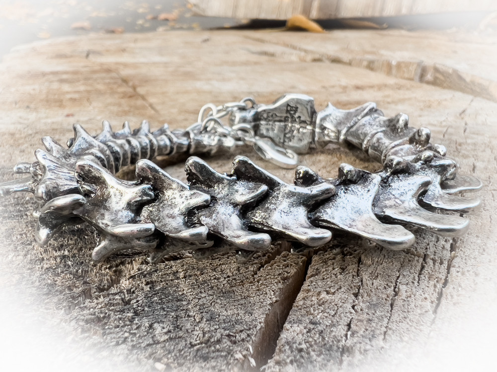 Браслет "Позвонки" представляет собой уникальное  изделие, которое олицетворяет силу и мужество, вдохновленное формами и структурами могучих существ в природе. Он ассоциируется с победой над ужасами и преодолением трудностей, что делает его не просто красивым аксессуаром, но и мощным амулетом для воинов в жизни.