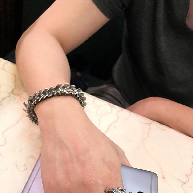 Дизайн и Символизм: Изделие выполнено в форме цельнолитого оловянного браслета, напоминающего скульптуру позвоночника побежденного хищника. Этот мощный образ символизирует силу и стойкость, а также напоминание о том, что даже самые сильные могут быть побеждены. Такой дизайн идеально подойдет тем, кто ценит креативные и запоминающиеся  украшения.