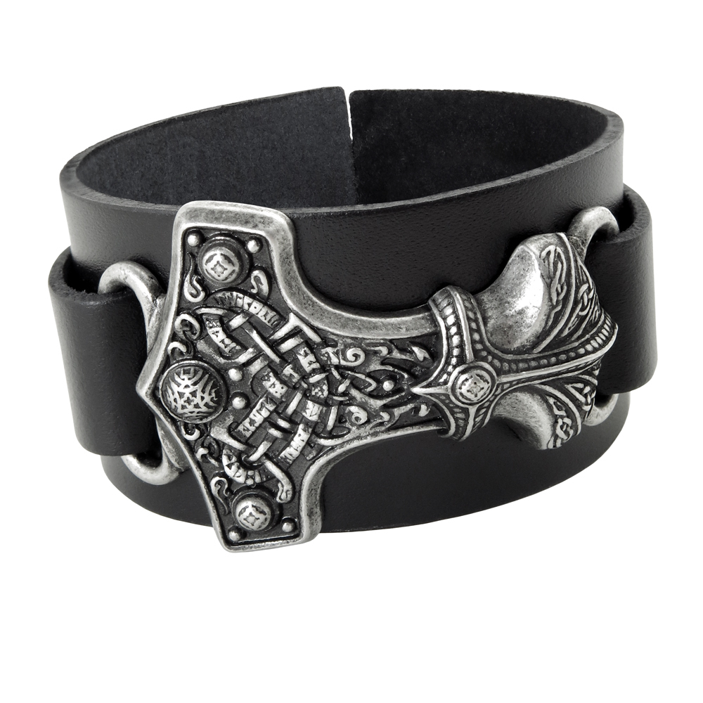 Кожаный браслет "Молот Грома" - это не просто украшение, это мощный амулет, который станет незаменимым аксессуаром для викинга. Этот браслет выполнен из натуральной кожи и сплава олова, что гарантирует его долговечность и прочность.