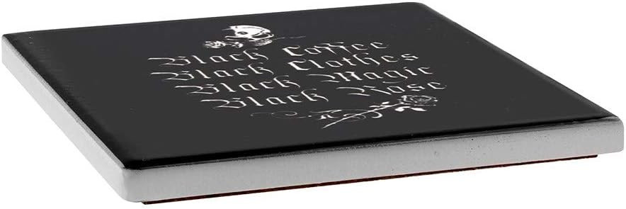 Эта красивая подставка проиллюстрирована идеальным готическим стихотворением - Черный кофе, черная роза, черная магия, черная роза! Существует 17 уникальных подставок с дизайном Alchemy, почему бы не собрать их все! Эта подставка разработана компанией Alchemy и является частью новой коллекции высококачественной керамической посуды для дома. Вес и размеры (приблизительно): 9,3х9,3х0,8 см. Вес: 102 г. Керамическая подставка с нескользящей пробковой подложкой, украшенная оригинальной иллюстрацией Alchemy. Термостойкая и устойчивая к царапинам.