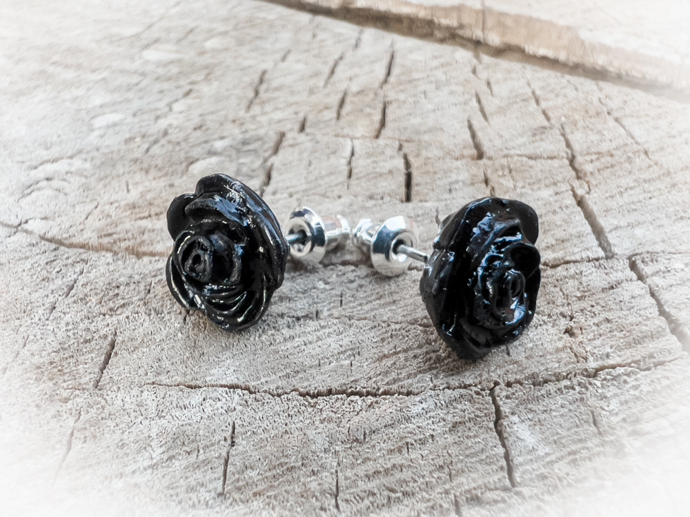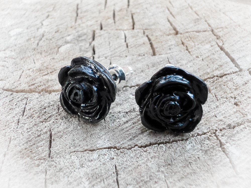 Серьги выполнены в форме бутонов черной розы, что делает их невероятно редкими и загадочными. Крепление выполнено из хирургической стали, что гарантирует долговечность и надежность. Силиконовая заглушка обеспечивает безопасность при носке и предотвращает случайное выпадение сережек.