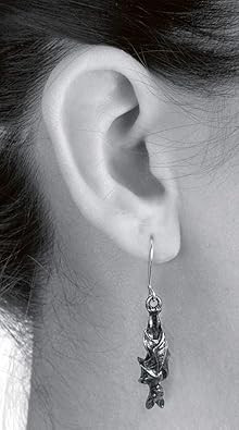 Спящие вампиры, молчаливые и неподвижные, предвкушают сумерки и последний след света, который должен угаснуть с закатом - так, хищники могут ждать... Пара маленьких под старинну летучих мышей, висящих вверх ногами с обернутыми вокруг крыльями; крепление - швензы из хирургической стали. Вес и размеры: В: 30 мм (1,18 дюйма) W: 9 мм (0,35 дюйма) Д: 7 мм (0,28 дюйма) Вес: 8 г (0,28 унции).