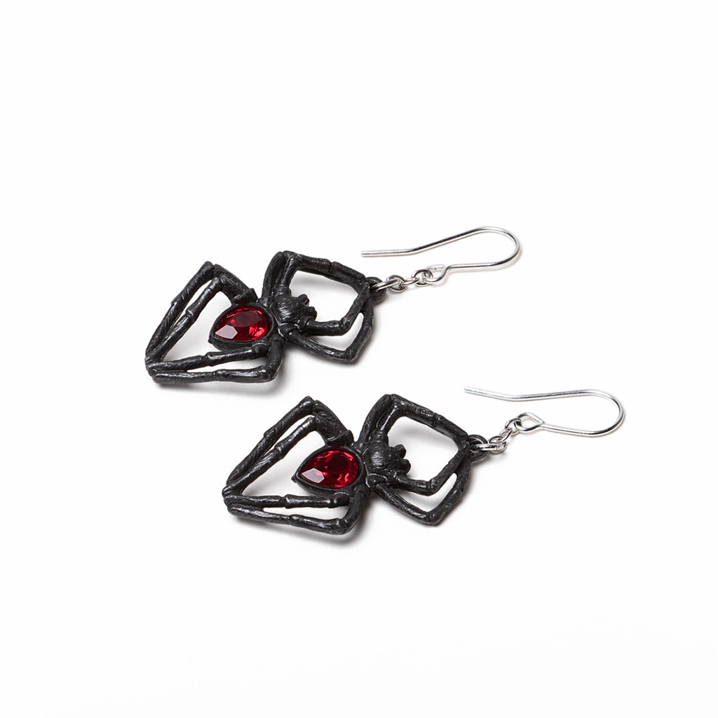 Серьги "Черная вдова" от Alchemy Gothic - это уникальное украшение, которое добавит готической драмы в любой образ. Эти серьги-пауки из черненого пьютера с красными австрийскими кристаллами на телах и хирургической стали на дужках, готовы вонзить свои клыки в любую желанную добычу.