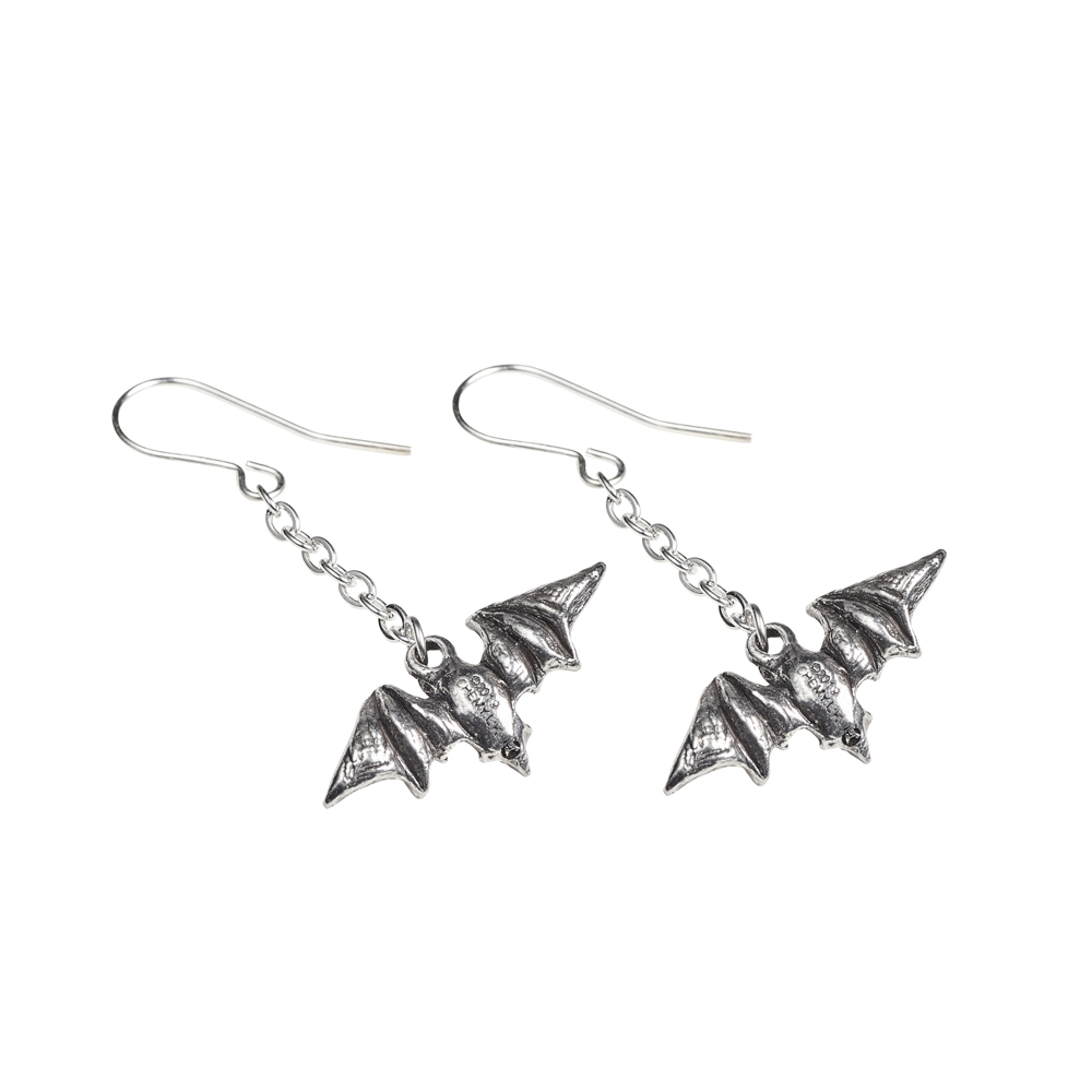 Серьги выполнены в виде пары маленьких летучих мышей, висящих на тонкой цепочке. Они выполнены из сплава олова, что обеспечивает их долговечность и прочность. Отделка сережек - чернение, что придает им особый шарм и готический стиль.