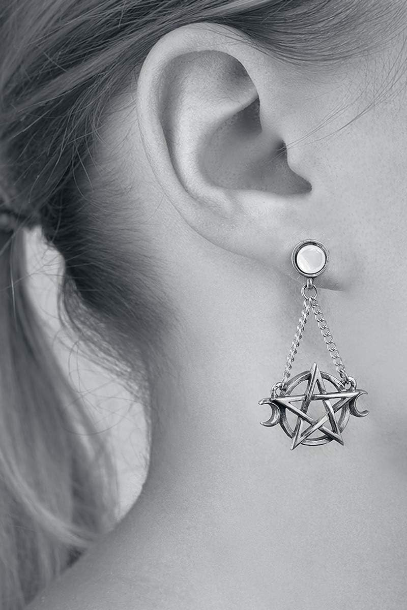 Триединая богиня Викки представлена пентаграммой в полной луне в ее сердце. Почувствуй себя "Богиней", надев эти великолепные серьги. Изысканная пара сережек в виде пентаграммы с маленькими полумесяцами с обеих сторон, висящими на тонкой цепочке. Вес и размеры: H: 44 мм (1,73 дюйма) W: 25 мм (0,98 дюйма) D: 16 мм (0,63 дюйма) Вес: 10 г (0,35 унции).