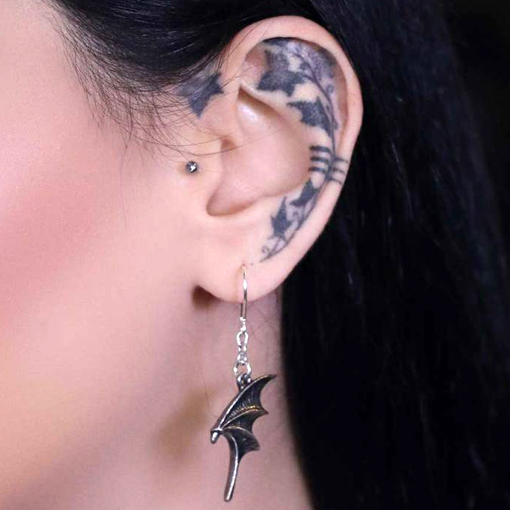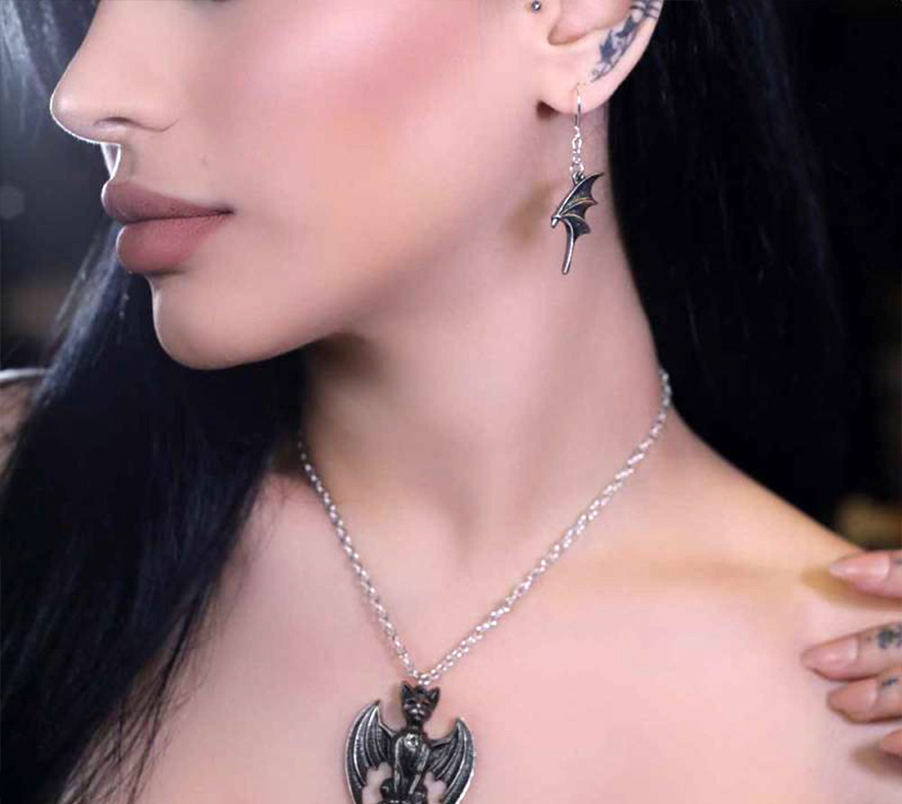 Серьги - Ночь с Гёте. Крылья пламенной любви, прилетевшие с темной стороны. Ночные волнения, возрождение из могилы - это создание бродит в поисках потерянной любви. Проявите свою симпатию к высшему ночному созданию с помощью этих поразительных серег с крыльями летучей мыши. Стилизованные серьги с крыльями летучей мыши изготовлены вручную из английского пьютера. Серьги упакованы в фирменный пакет Alchemy, включая гарантию Alchemy и инструкции по уходу. Разработаны и изготовлены вручную в Англии из английского пьютера.