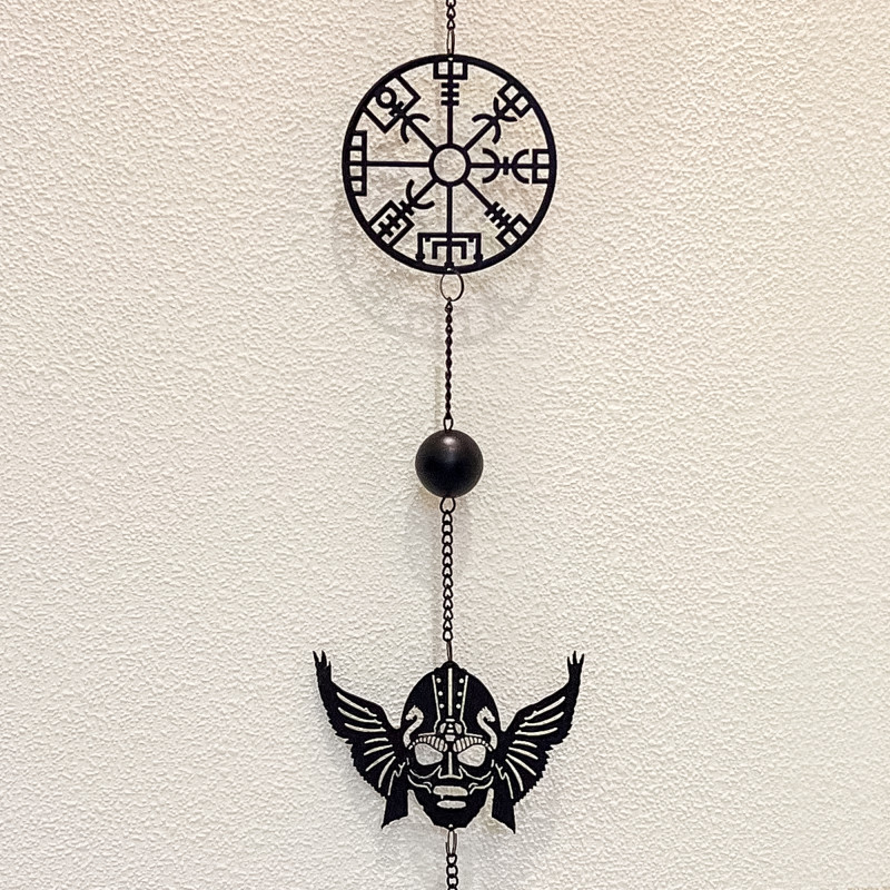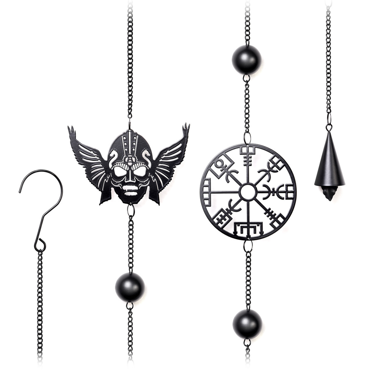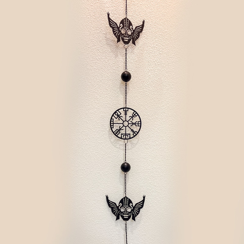 Подвесное украшение выполнено в элегантном черном цвете, что делает его универсальным и подходящим для любого интерьера. Его размеры (высота 105 см, ширина 12 см, глубина 3 см) обеспечивают заметность, при этом оно легкое и удобное для подвешивания. С весом всего 70 г, «Викинг» легко разместить в любом месте — будь то комната, сад или балкон. Этот элемент декора прекрасно сочетает в себе эстетику и функциональность, создавая атмосферу спокойствия и уюта.