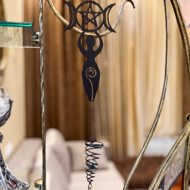 Погрузитесь в мир древней магии с подвесным украшением «Богиня Дану», олицетворяющей трижды великую мать земли и всех богов. Это уникальное украшение станет идеальным акцентом для вашего пространства, добавляя атмосферу мистики и изысканности.