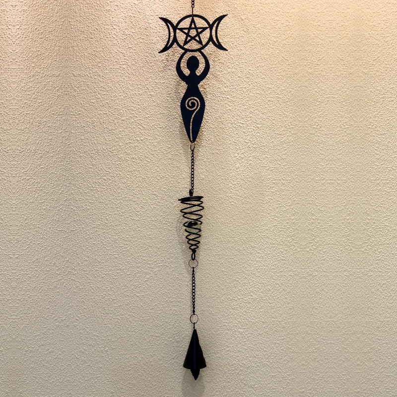 Коллекция подвесных украшений Alchemy England предлагает вам затмить лунные окна суровыми, но потрясающими алхимическими изображениями, которые наложат защитные чары на ваших близких. Покажите миру свой темный, но элегантный вкус с помощью изображения богини-матери Дану, украшенной тройной луной, спиральным элементом и стеклянным шаром, создающим нежный звук ветряного колокольчика.