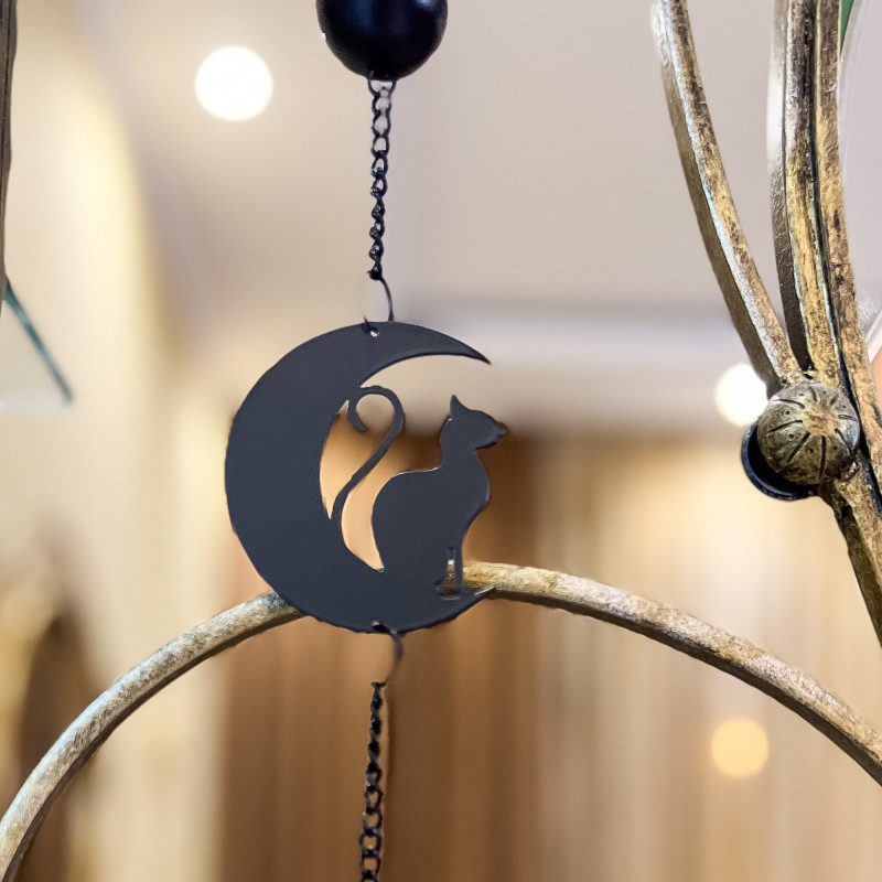 Это подвесное украшение "Черная кошка и луна" — отличный способ привнести в ваш дом атмосферу таинственности и очарования, создавая уникальный стиль и настроение!