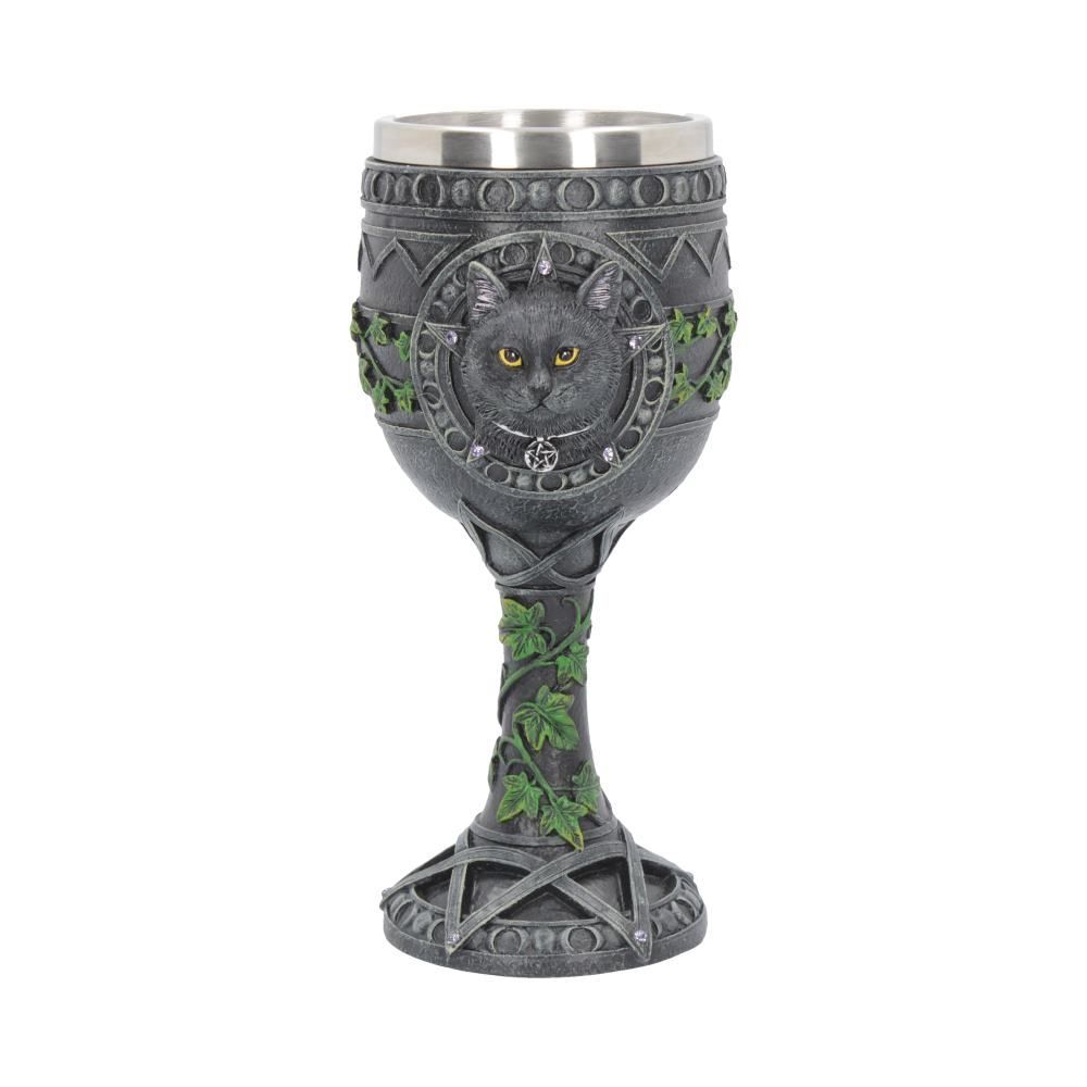 Готический кубок, созданный неукротимым воображением Лизы Паркер, доступен исключительно через Nemesis Now. Кошачья голова смотрит прямо на вас, в желтых глазах отражается заколдованная душа. За головой видны лучи пентаграммы, а всю чашу обвивает плющ. Ножка кубка стоит на пентаграмме, по ней вьется плющ. Кубок, отлитый из высококачественной смолы и искусно раскрашенный вручную, идеален для тех, кто стремится к магии.