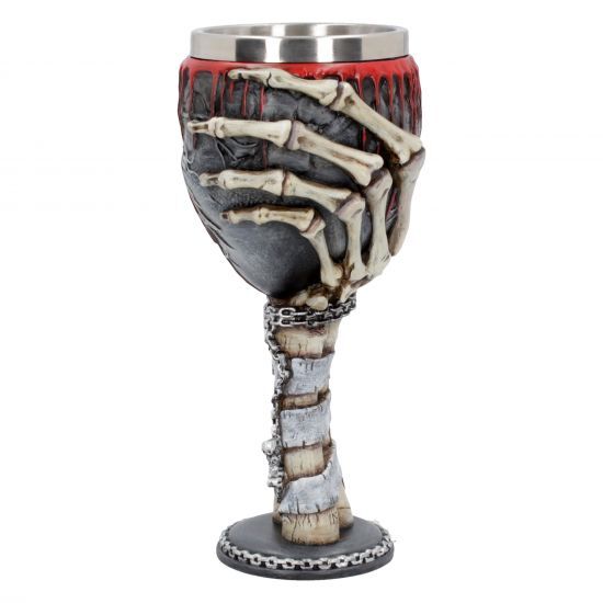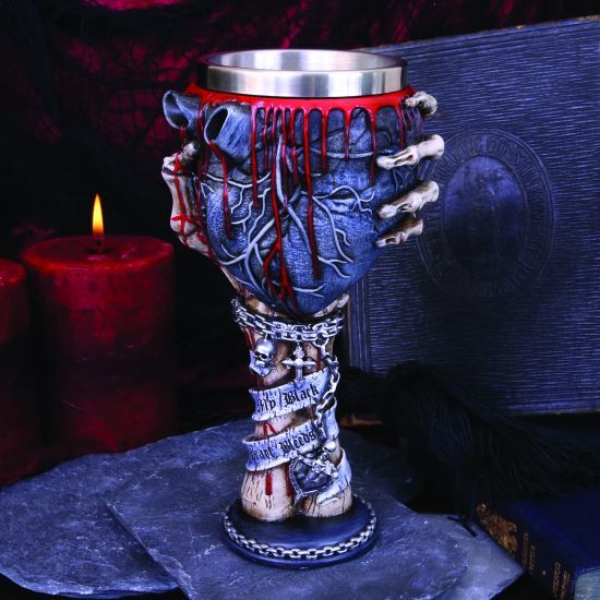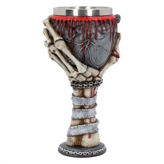 Этот жуткий кубок - мечта любого поклонника ужасов, созданный умами собственных дизайнеров Nemesis Now! Из прикованного основания поднимается скелетная рука с почерневшим сердцем в руках. На поверхности смертельного сердца проступают замысловатые вены и артерии, а по ободку струится свежая кровь, делая кубок еще более жутким. Вокруг запястья скелета ниспадает толстая цепь, украшенная маленькими серебряными подвесками в виде креста, черепа и сердца. Вокруг костяной структуры начертана надпись "Мое черное сердце кровоточит". Отлитый из тончайшего полистоуна, а затем искусно расписанный вручную, этот готический кубок имеет съемную вставку из нержавеющей стали для удобства чистки. Воплотите свои кошмары в жизнь уже сегодня! Предназначен для использования по прямому назначению, а так же в декоративных целях. Мыть только вручную. Объем бокала - 200 гр. 18 см.
