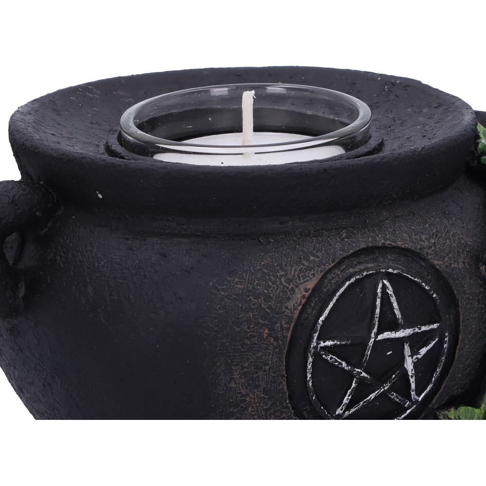 Этот набор из двух подставок для свечей, украшенных плющом, от мастеров мрачных дел Nemesis Now - мечта любого любителя оккультизма. Эти котелки с небольшим пространством в центре для размещения чайной свечи имеют черную матовую отделку и украшены серебряной пентаграммой в центре, окруженной лианами зеленого плюща. Отлитые из тончайшей смолы, эти изделия станут прекрасным дополнением к любому темному алтарю. 11см.