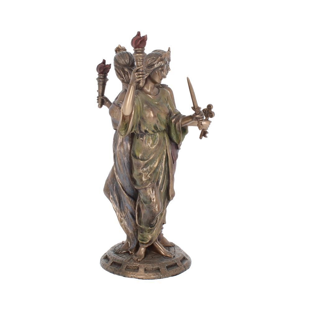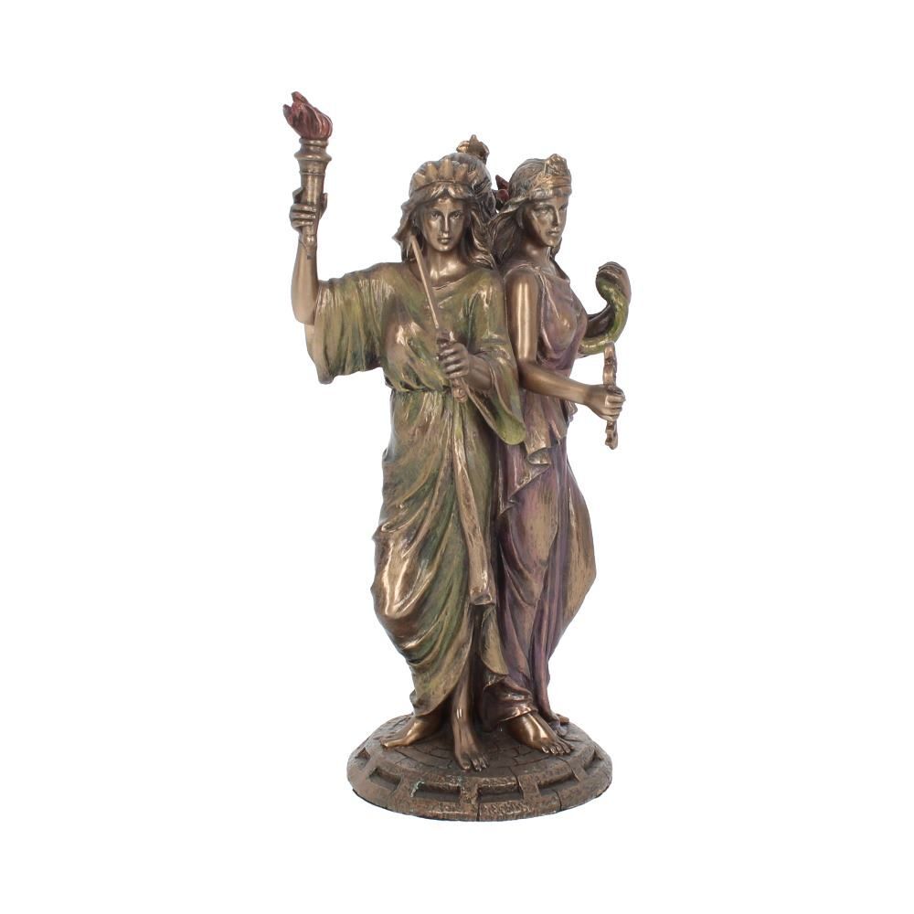Отлитая из тончайшего полистоуна и покрытая бронзой, эта мистическая богиня представлена в коллекции сувенирной продукции альтернативного бренда Nemesis Now. Геката - богиня в древнегреческой религии и мифологии, чаще всего изображаемая с парой факелов или ключом.