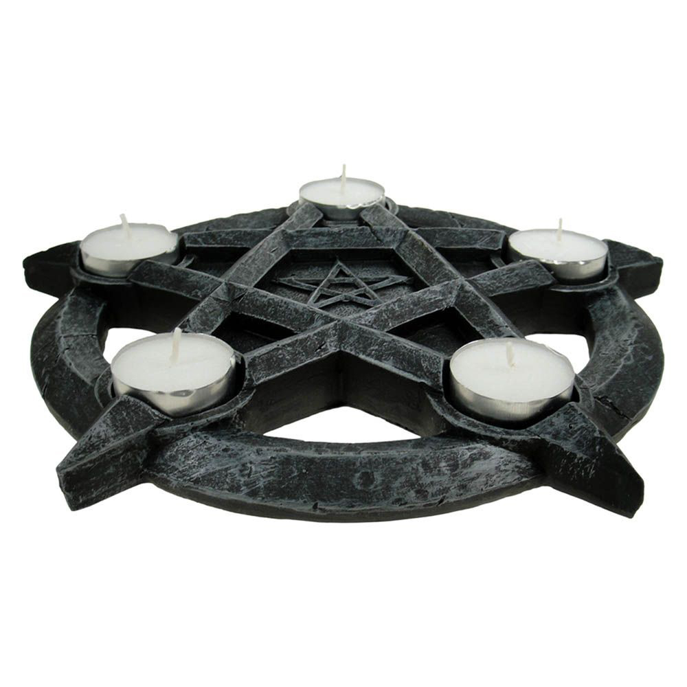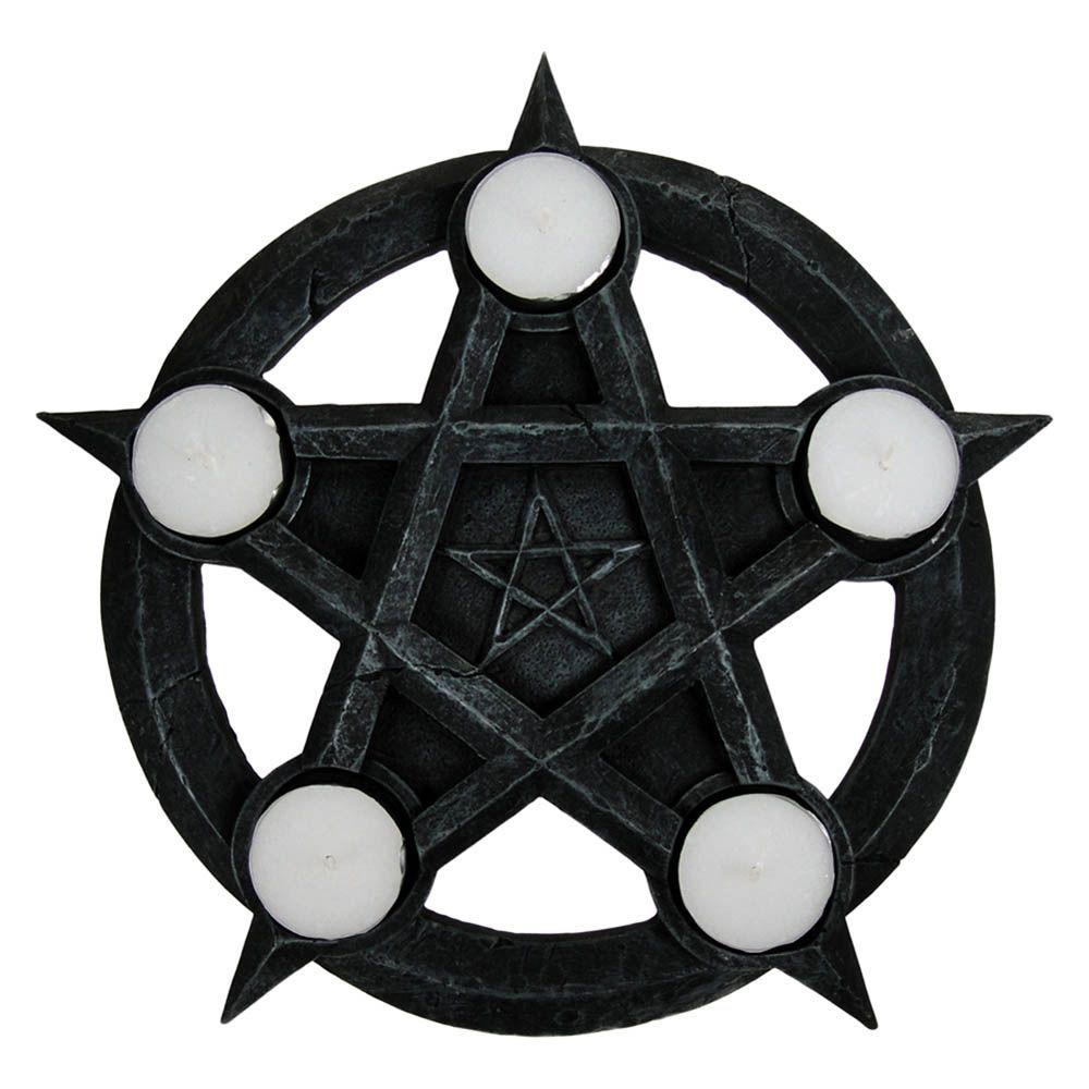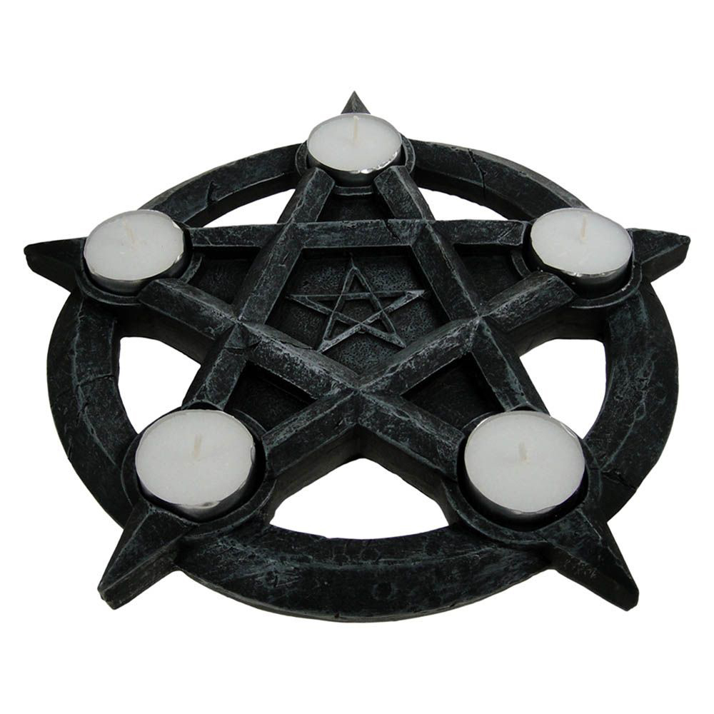Этот держатель для чайной свечи из коллекции сувенирной продукции альтернативного бренда Nemesis Now идеально подходит для освещения вашего дома. Отлитый из высококачественной смолы, а затем искусно расписанный вручную, центральный символ пентаграммы усиливает магию этого оккультного подсвечника. Вмещающий 5 чайных свечей, этот предмет идеально подходит как для освещения, так и для ритуального использования, и, несомненно, станет центром любой комнаты. 26 см.