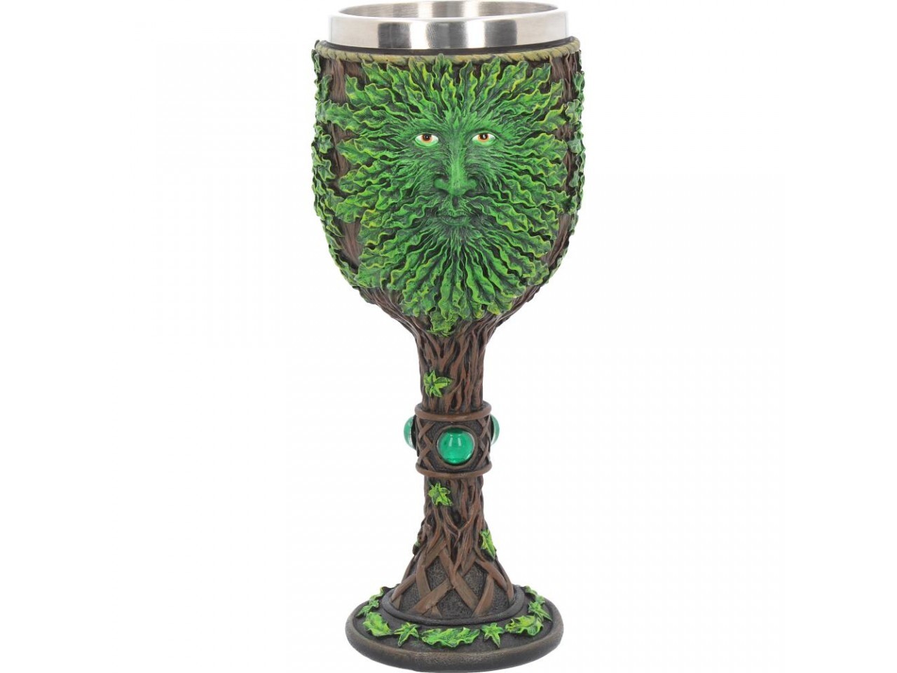Этот кубок был создан талантливыми дизайнерами бренда Nemesis Now. Отлитый из тончайшего полистоуна, а затем тщательно расписанный вручную, этот кубок поставляется со съемной вставкой из нержавеющей стали для удобства очистки. Предназначен для использования по прямому назначению, а так же в декоративных целях. Мыть только вручную. Объем бокала - 200 мл. Ножка этого кубка имеет вид извилистого ствола дерева, крепкого и коричневого. Она поднимается к чаше, украшенной лицом зеленого человека, духа леса, духа природы с большими проникновенными глазами, смотрящими на вас из-под бороды густых зеленых дубовых листьев. 19 см.