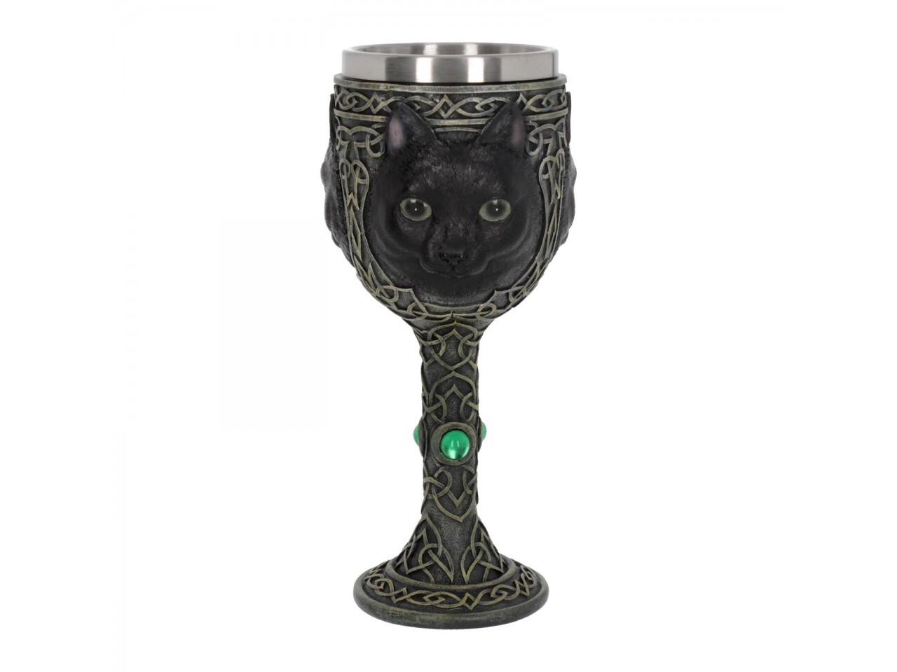 Nemesis Now - мастера готического и фантазийного искусства и моделирования. Они работают с ведущими мировыми художниками и дизайнерами фэнтези, создавая потрясающие коллекционные предметы. Этот кубок "Кошка" идеально подходит для всех, кто ценит кошачью красоту. Основание и ножка украшены крупными изумрудными драгоценными камнями и кельтскими узорами, которые переходят на чашу. По бокам кубка расположен большой портрет черной кошки, смотрящей вперед. Отлитый из высококачественного полистоуна и тщательно расписанный вручную, этот кубок поставляется со съемной вставкой из нержавеющей стали для удобства чистки. Предназначен для использования по прямому назначению, а так же в декоративных целях. Мыть только вручную. Объем бокала - 200 мл. 19 см.