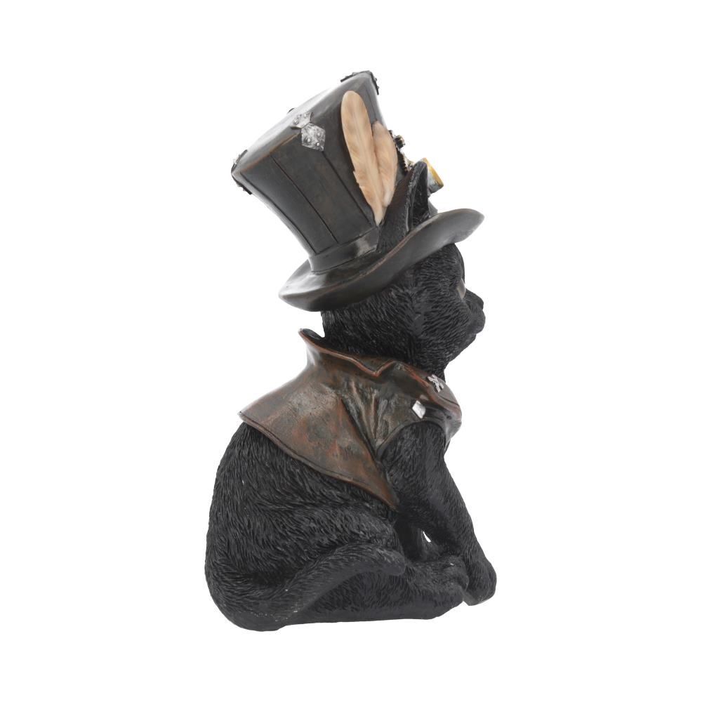 Доступный в премиальной коллекции подарков Nemesis Now очаровательный кот Cogsmith's Cat - прекрасный друг изобретателя. Кот сидит на задних лапах, на голове - цилиндр, украшенный шестеренками, часовыми механизмами и перьями.