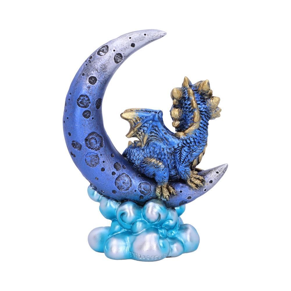Наша коллекция существ с полумесяцем обладает индивидуальностью, такой же уникальной, как цвет их чешуи. Это голубое существо сидит какв колыбели в полуночном голубом полумесяце. Под ним бирюзово-голубые облака, похожие на пузырьки. У маленького дракона голубая чешуя имеет золотые акценты на рогах, когтях и груди. Эти полуночные существа-полумесяцы станут прекрасным дополнением к любой коллекции любителей драконов. 11 см.
