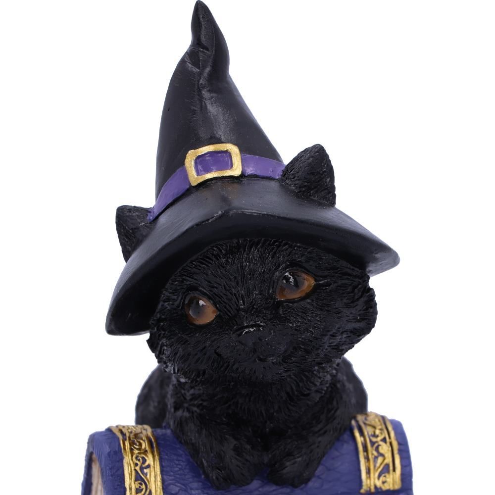Очаровательная фигурка кошки, доступная в коллекции Nemesis Now, отлита из высококачественной смолы и тщательно раскрашена вручную. Покус находится в игривом настроении, он стоит рядом с фиолетовой книгой заклинаний.