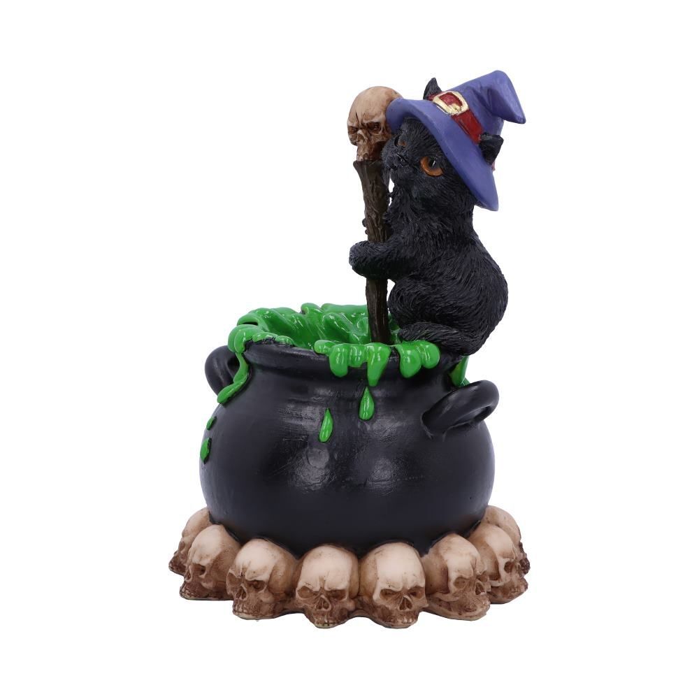 Очаровательная фигурка кошки, доступная в коллекции Nemesis Now, отлита из высококачественной смолы и тщательно раскрашена вручную. Кошка сидит на краю переполненного котла, помешивая варево посохом с черепом.