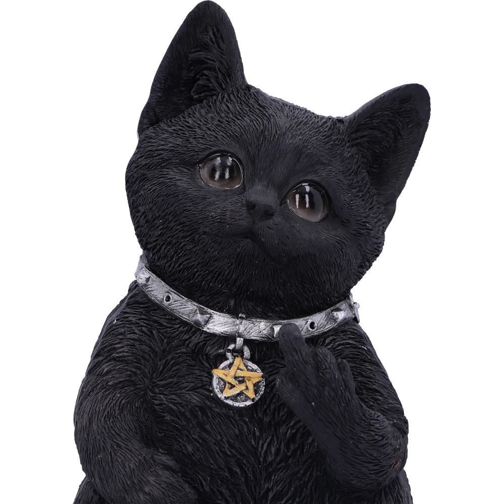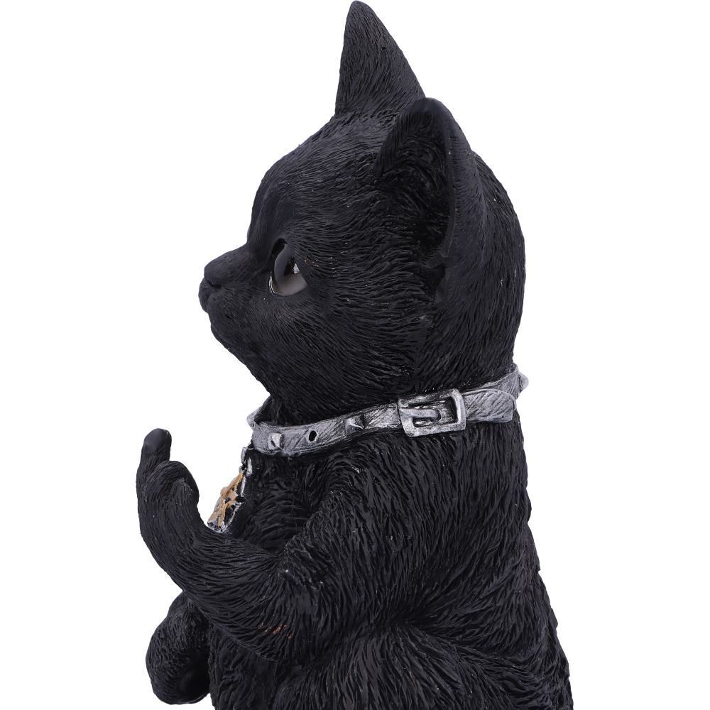 Этот котенок сидит и смотрит на вас, на его ошейнике красуется маленькая пентаграмма. Он не так невинен, как кажется! Его маленькая левая лапа поднята и показывает любому постороннему "палец". Отлитая из высококачественной смолы и тщательно раскрашенная вручную, эта фигурка, вероятно, будет самой озорной кошкой, на которую вы когда-либо смотрели, и станет прекрасным дополнением к коллекции любого фаната кошачьих.