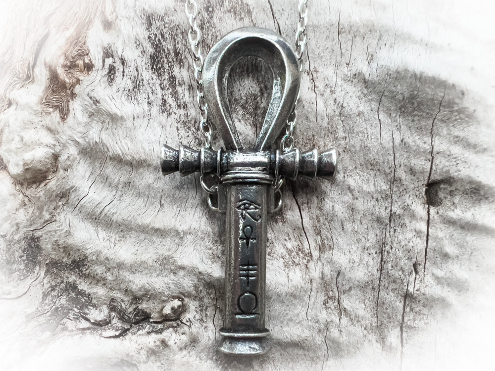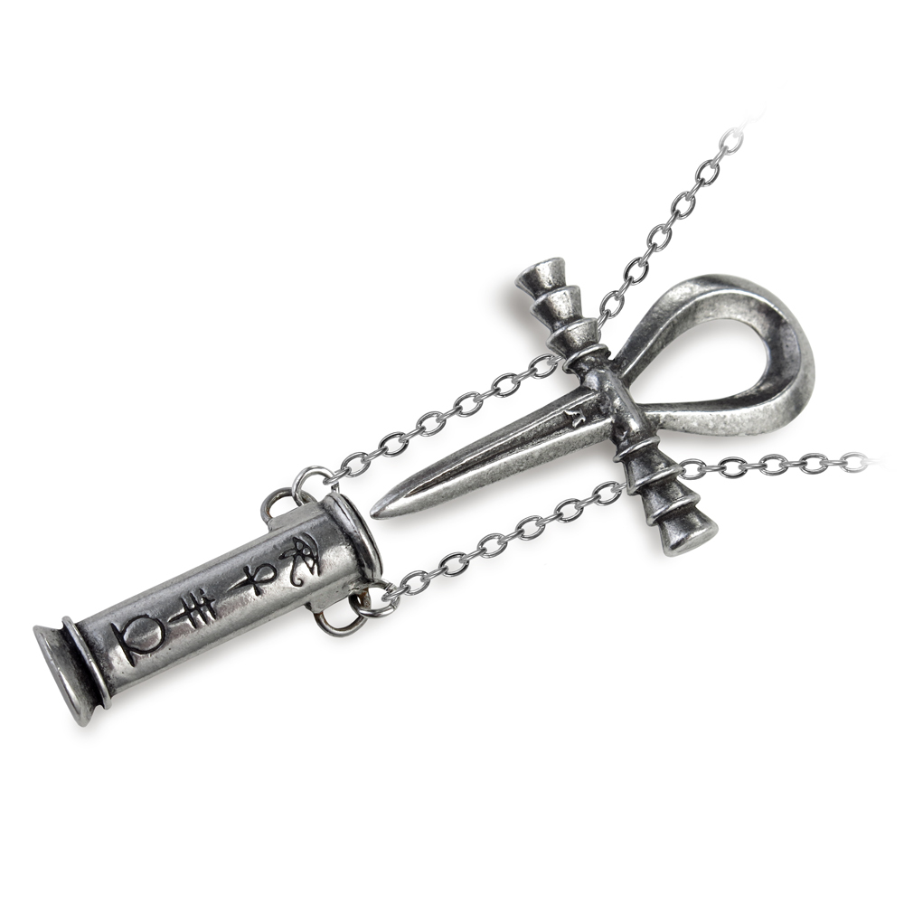 Изображение вечности современного вампира, заключающий в себе тайный клинок с кровью жизни в стилизованных ножнах, на которых выгравированы египетские иероглифы: Глаз Гора (здоровье), Анкх (триумф жизни над смертью), Столп Джеда (стабильность) и Шен (бесконечность). Вечный сувенир для вечной жизни. Древний анкх со съемным кинжалом (на безопасной цепочке). В ножнах выгравированы древнеегипетские орнаменты. Вес и размеры (приблизительно): H: 79 мм (3,11 дюйма) W: 42 мм (1,65 дюйма) D: 14 мм (0,55 дюйма) Вес 36 г (1,27 унции)