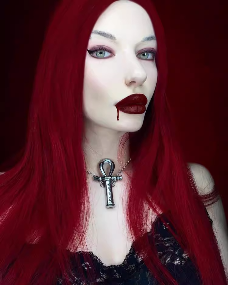 Изображение вечности современного вампира, заключающий в себе тайный клинок с кровью жизни в стилизованных ножнах, на которых выгравированы египетские иероглифы: Глаз Гора (здоровье), Анкх (триумф жизни над смертью), Столп Джеда (стабильность) и Шен (бесконечность). Вечный сувенир для вечной жизни. Древний анкх со съемным кинжалом (на безопасной цепочке). В ножнах выгравированы древнеегипетские орнаменты.