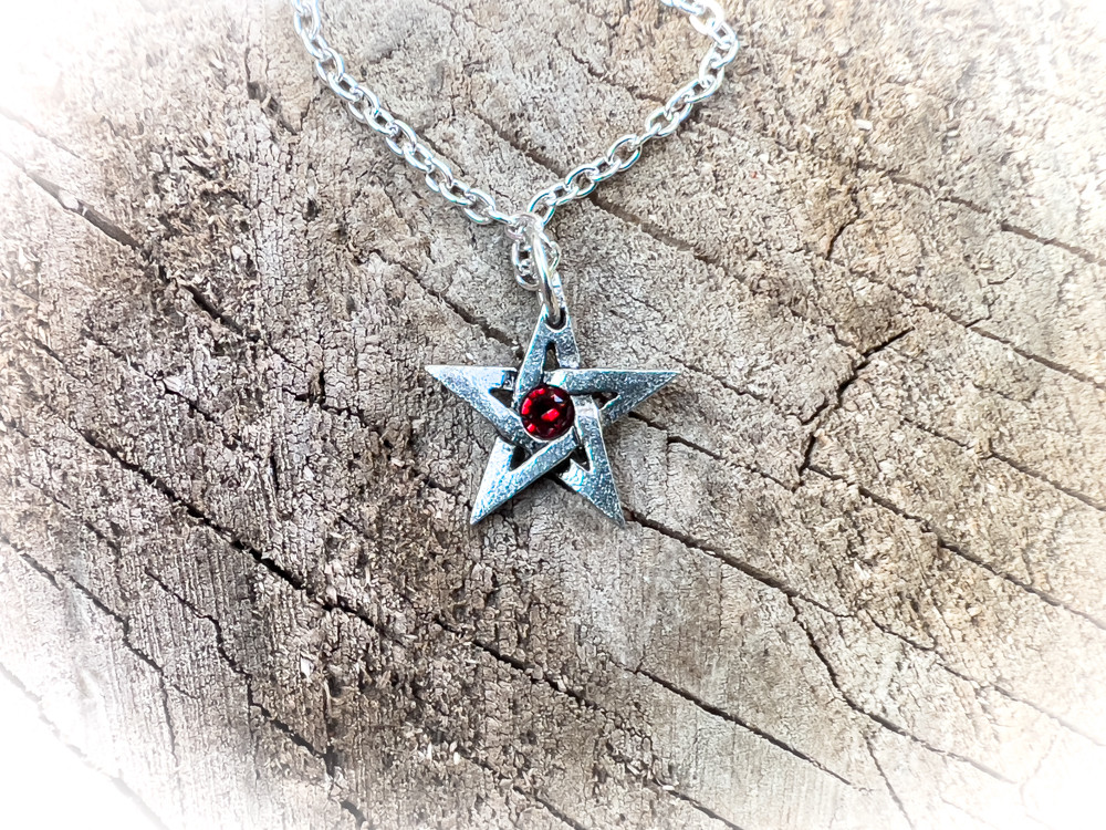 Украшенная кристаллами изящная пентаграмма. Сверкающий кулон для любого случая. Небольшой кулон-пентаграмма с одним красным австрийским кристаллом. Вес и размеры (приблизительно): H: 24 мм (0,94 дюйма) W: 21 мм (0,83 дюйма) D: 8 мм (0,31 дюйма) Вес 7 г (0,25 унции)