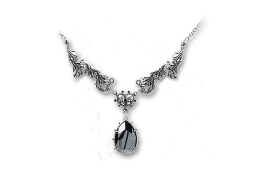 Камео, предсказывающее судьбу бесконечной любви. Камень стального цвета, в нем все отражается, как в зеркале. Его размеры: 3 см * 4 см. Подвес с этим камнем висит на цепи длиной 1 см. Размеры центрального 4 (сердце с двумя черепами, смотрящими друг на друга): 2,5 см * 2,5 см. Длина крайних витых украшений = 9 см каждое. На цепи (26 см, длина регулируется, можно увеличить ее еще на 1-4 см).В подарочной упаковке: на черной бархатной подложке в черном полупрозрачном мешочке. Изделие из английского пьютера украшено кристаллами Сваровски, изготовлено в Великобритании. Идеи и дизайн изделия разработаны художниками бренда The Alchemy Gothic и защищены авторским правом.
