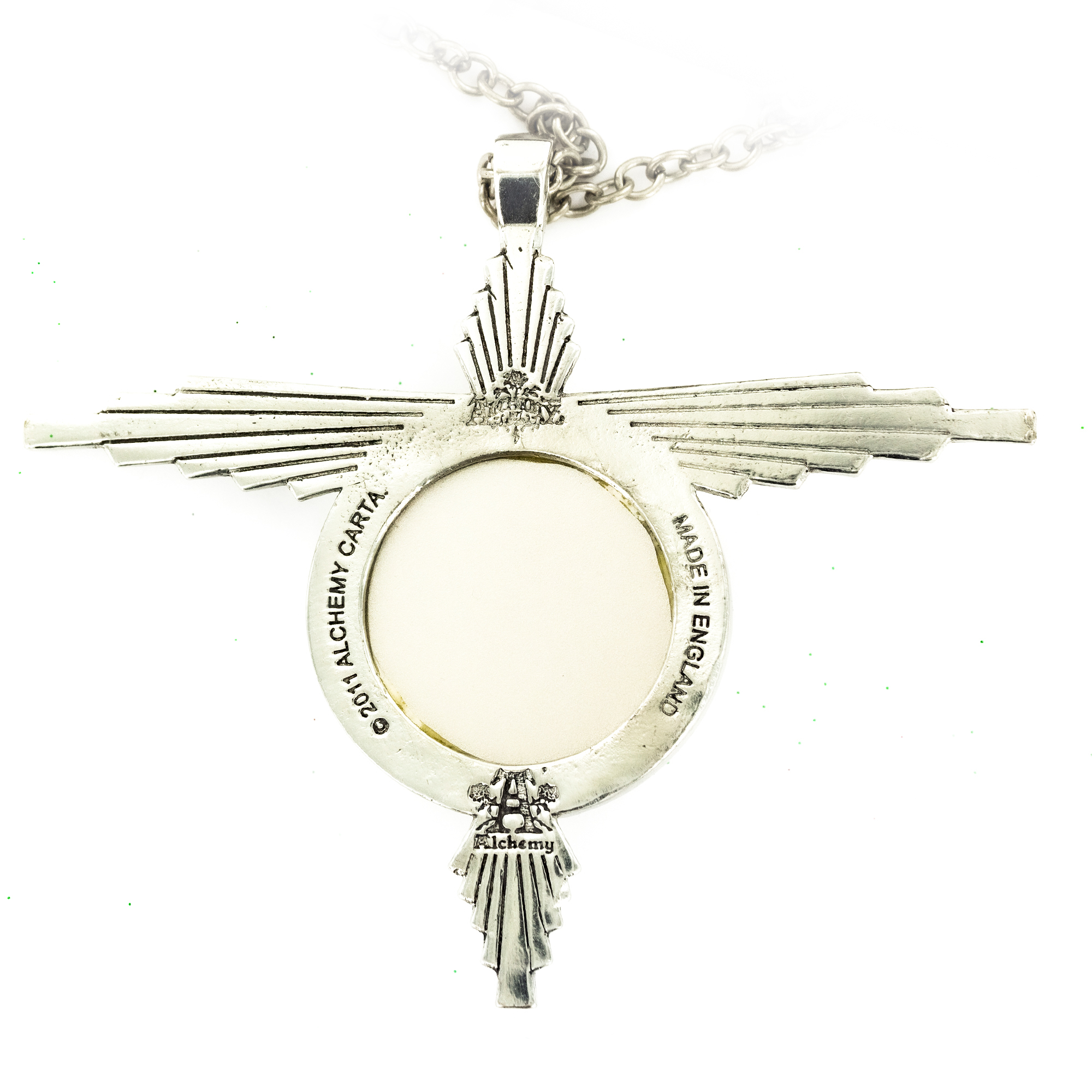 Подвеска Орнамент смерти - сверкающий камень из хрусталя Сваровски звездной огранки, дополненный изображениями черепа. Изделие из английского пьютера изготовлено в Великобритании. Идеи и дизайн изделия разработаны художниками бренда The Alchemy Gothic и защищены авторским правом.