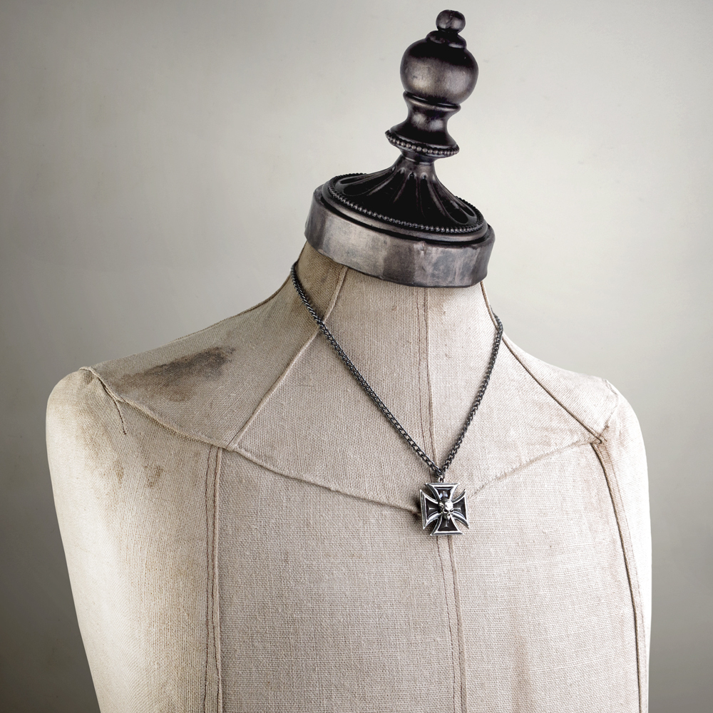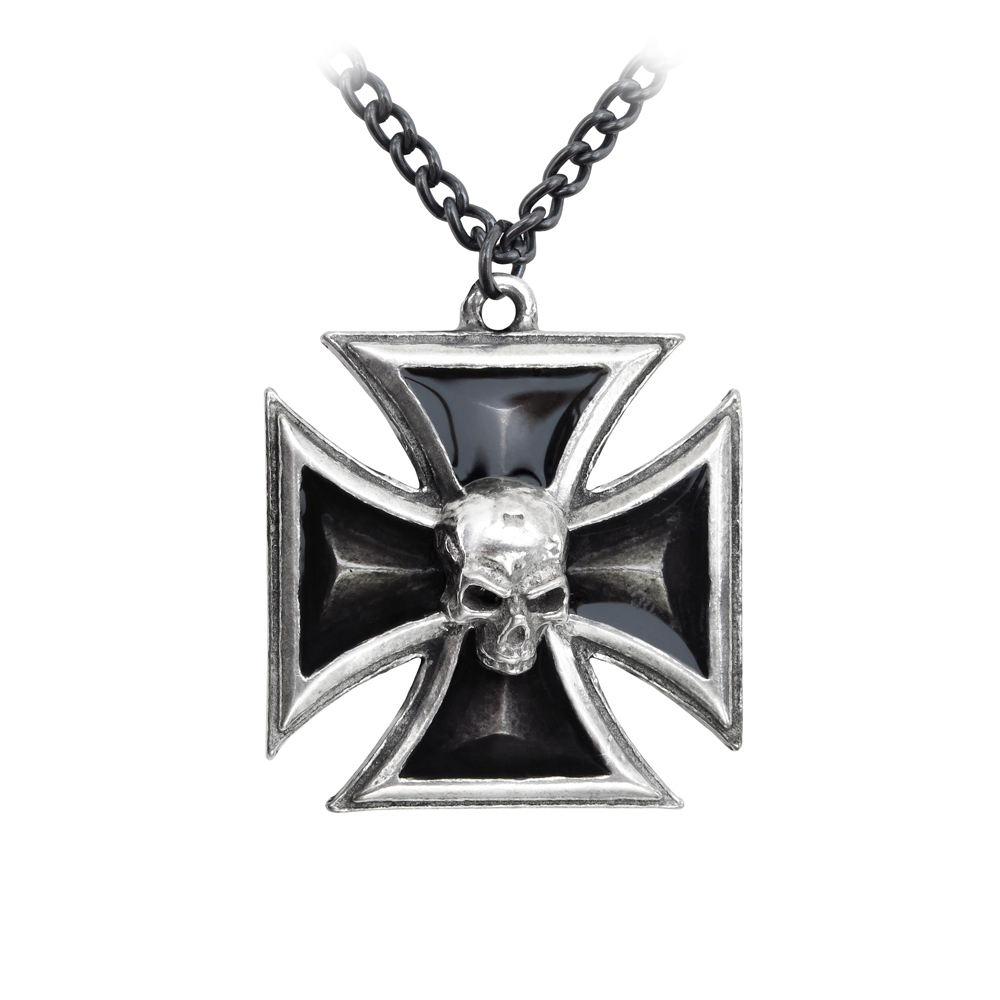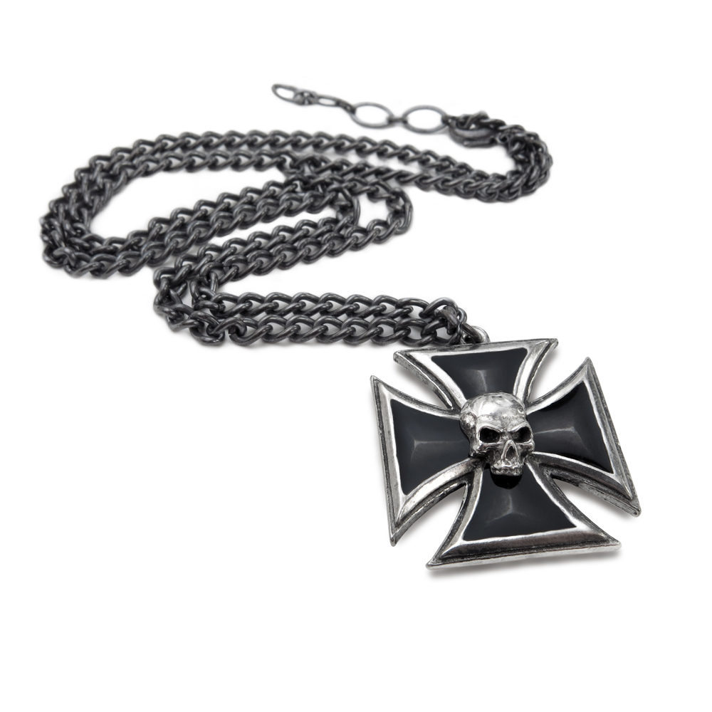 Подвеска Черный крест украшена черепом. В награду за коварные поступки. Кулон "Железный крест" с черепом в центре и черной эмалью.