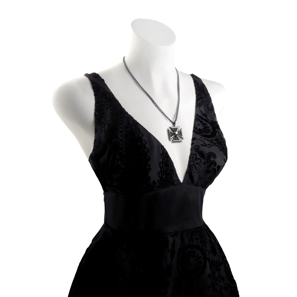 Подвеска Черный крест украшена черепом. В награду за коварные поступки. Кулон "Железный крест" с черепом в центре и черной эмалью. Вес и размеры (приблизительно): H: 34 мм (1,34 дюйма) W: 35 мм (1,38 дюйма) D: 7 мм (0,28 дюйма) Вес 33 г (1,16 унции)