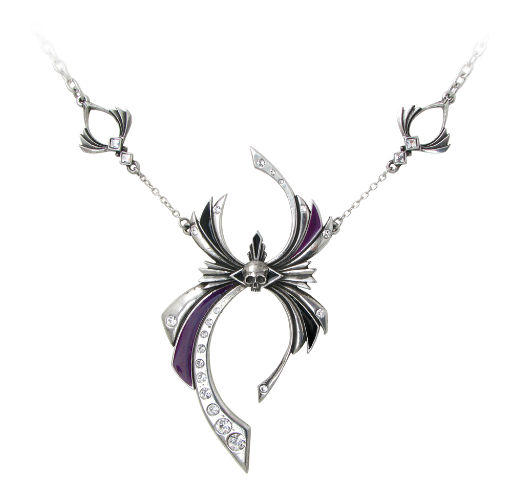 Проявление красоты в арахниде в стиле "модерн" 1920-х годов. Изделие из английского пьютера изготовлено в Великобритании. Идеи и дизайн изделия разработаны художниками бренда The Alchemy Gothic и защищены авторским правом. Размеры центрального украшения: 11 см (высота) * 5,6 см (ширина). Длина боковых украшений вместе с цепочками, которыми они крепятся к центральному = 6 см. На цепи (36 см, длина регулируется, можно увеличить ее еще на 1-4 см). В подарочной упаковке: на черной бархатной подложке в черном полупрозрачном мешочке.